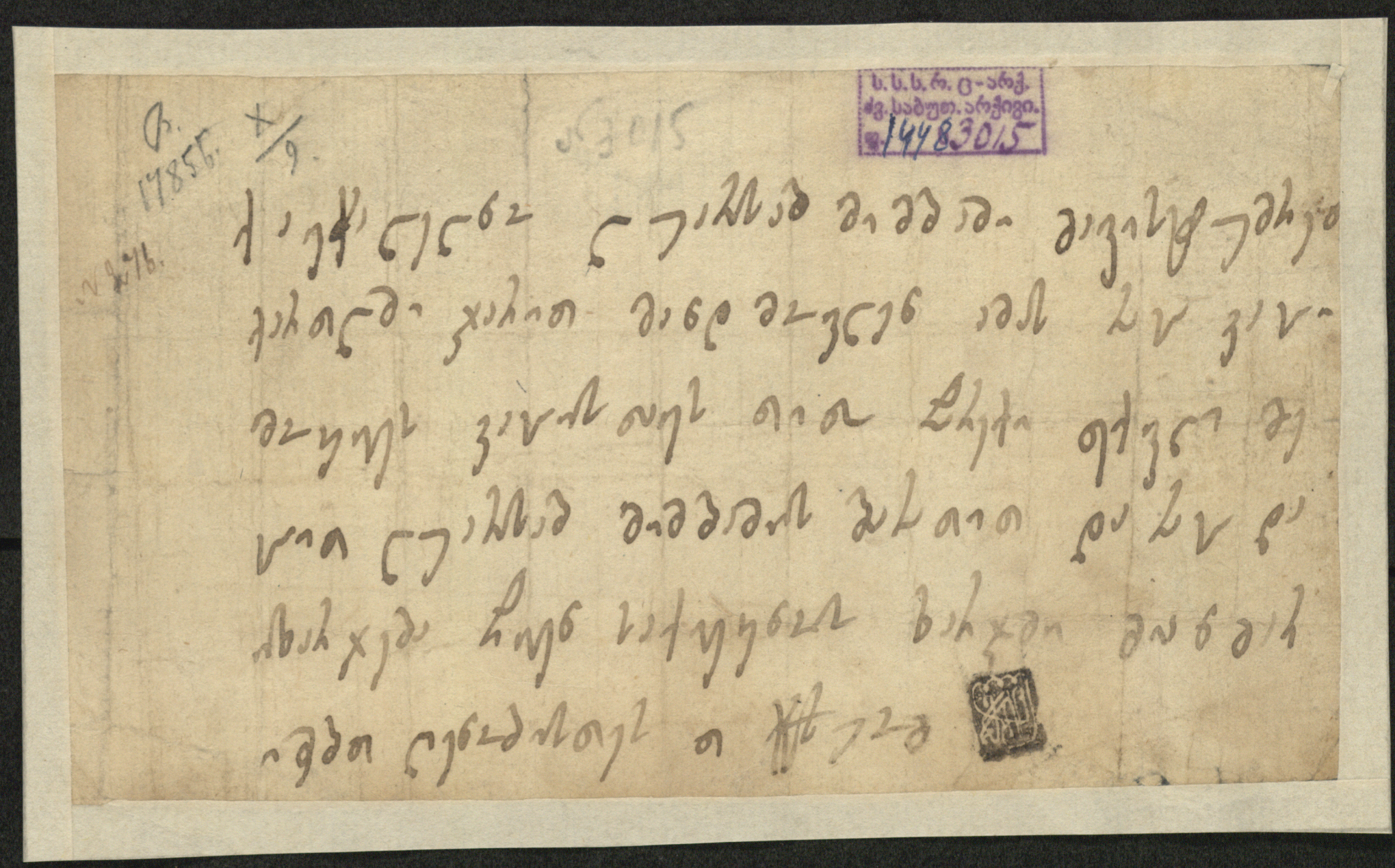 ჭვირნიშნიანი ქაღალდი მოყვითალო, შესრულებული შავი მელნით