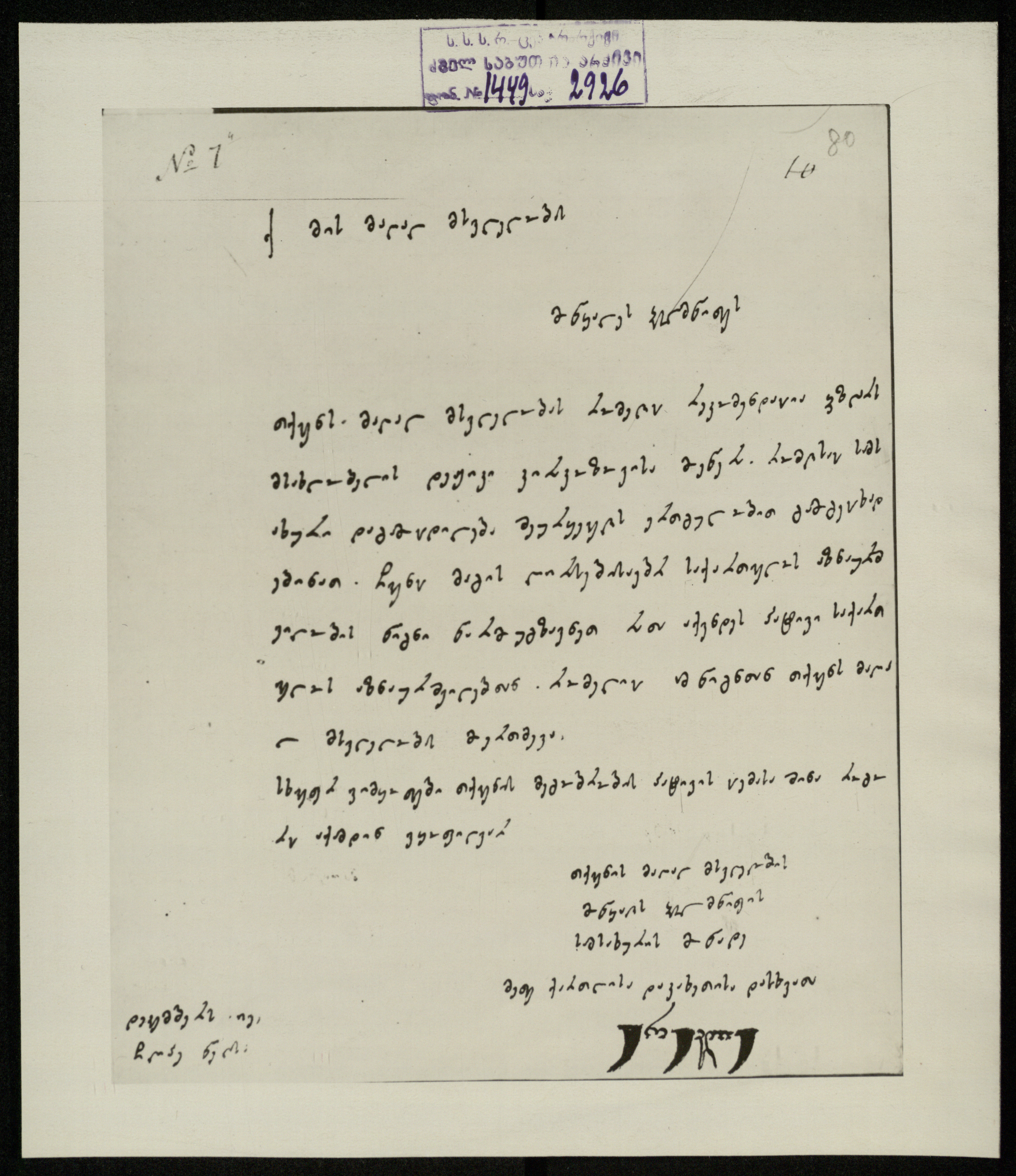 საბუთი ჩამოტანილია მოსკოვიდან 1961 წ. ავთანდილ იოსელიანის მიერ.