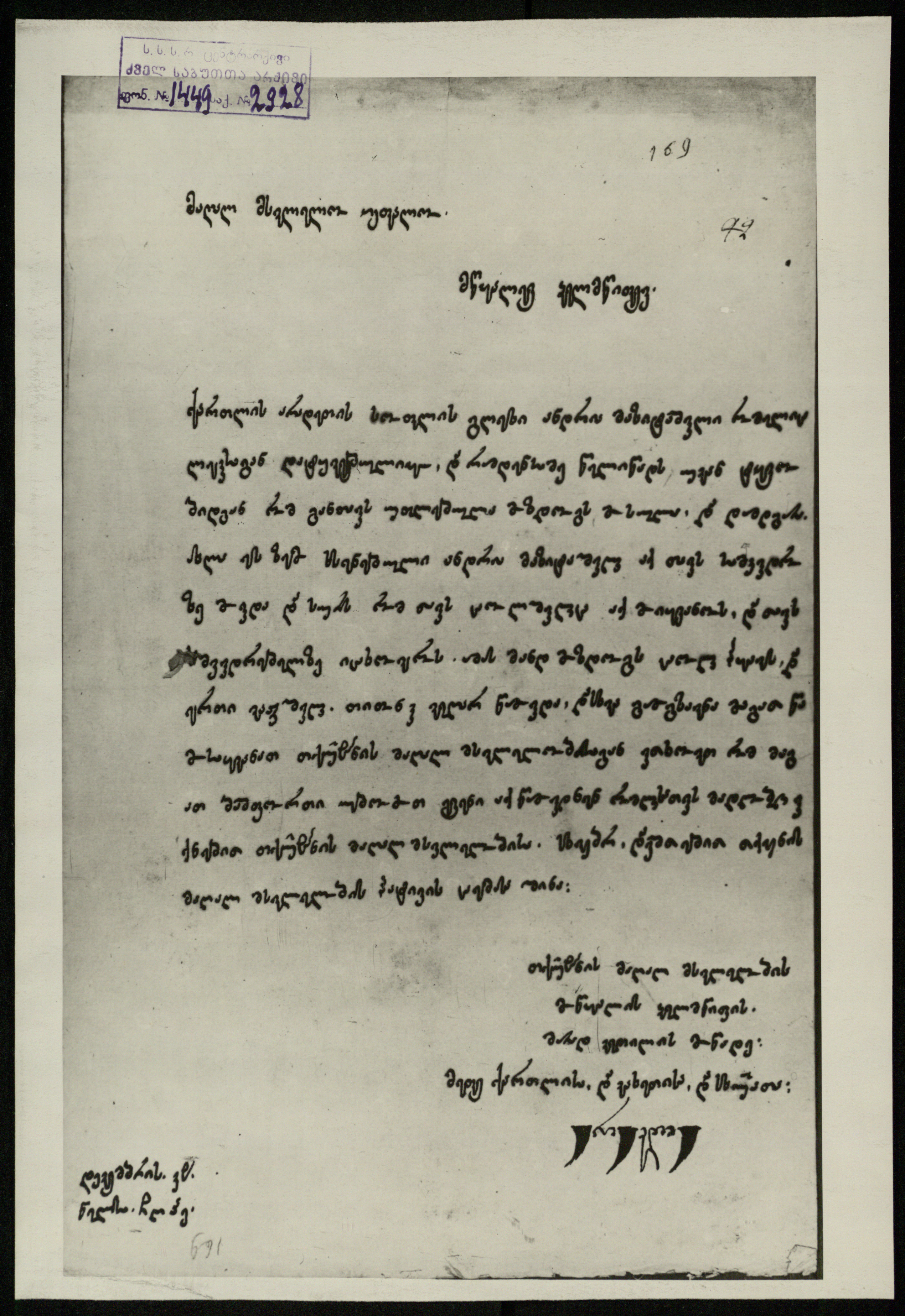 საბუთი ჩამოტანილია მოსკო ის არქივიდან 1961 წ, ავთანდილ იოსელიანის მიერ.