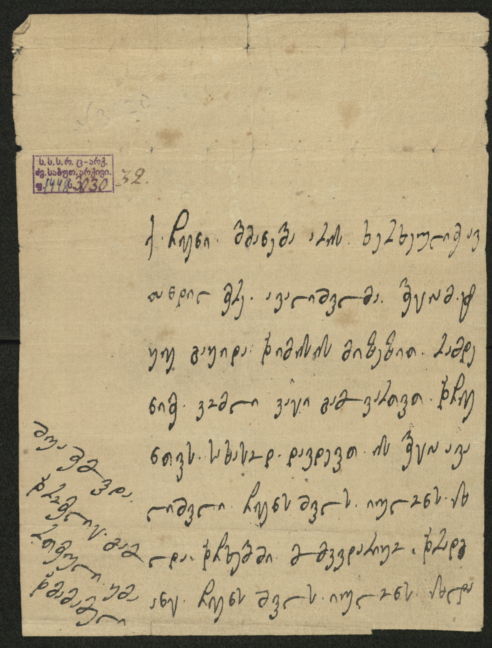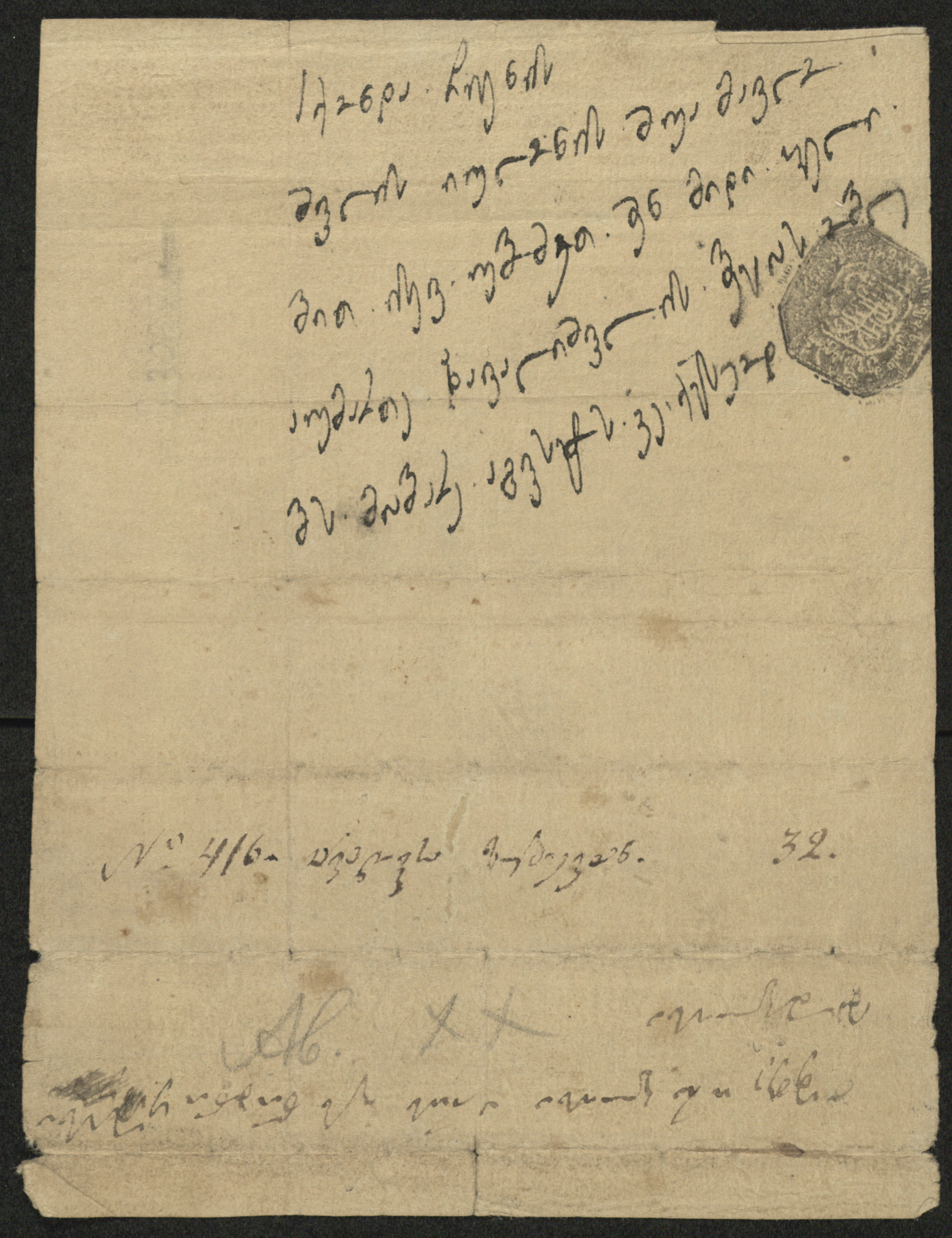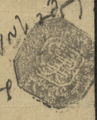 ჭვირნიშნიანი ქაღალდი ნაცრისფერი, შესრულებული შავი მელნით