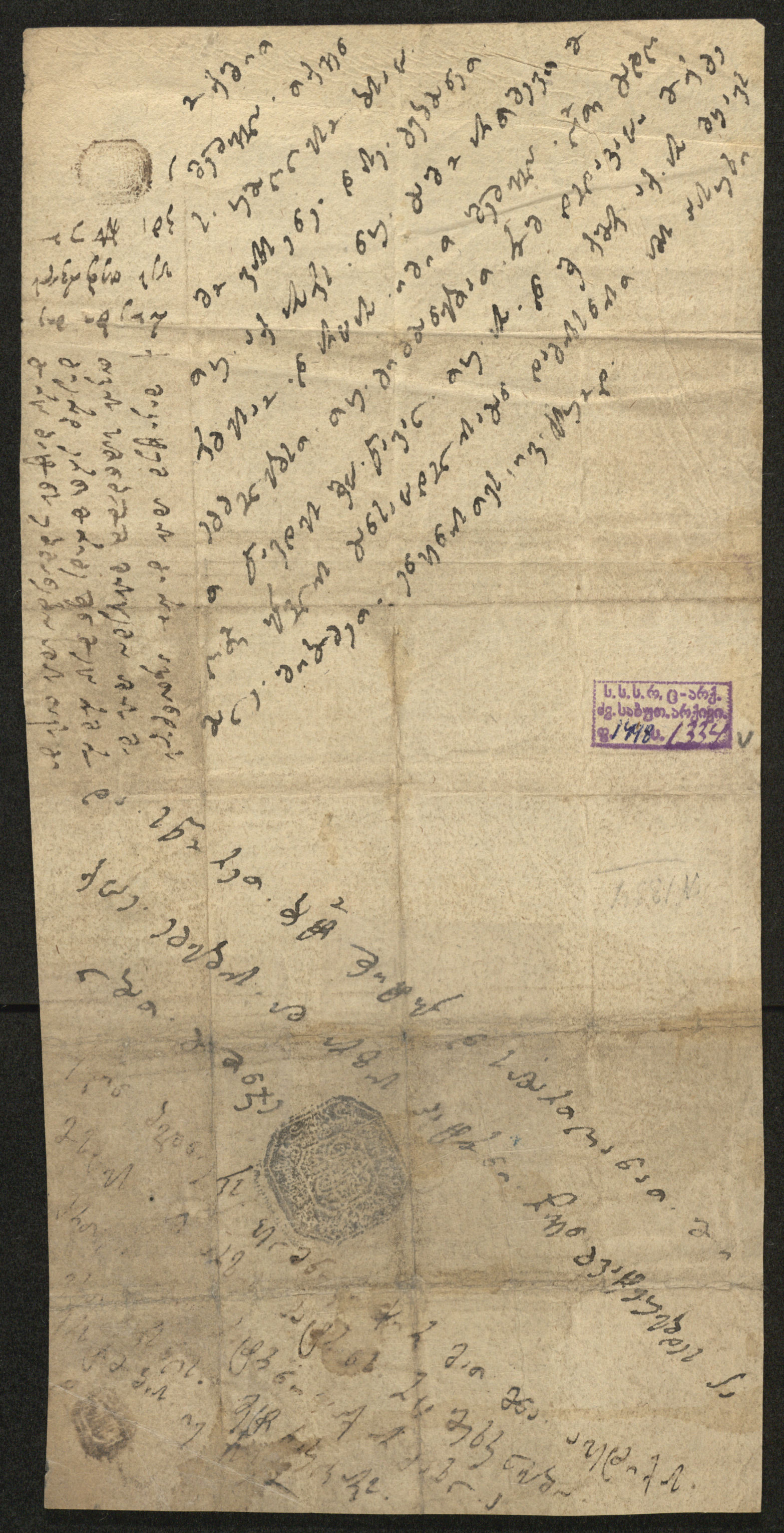 ჭვირნიშნიანი ნაცრისფერი ქაღალდი, შესრულებული შავი მელნით