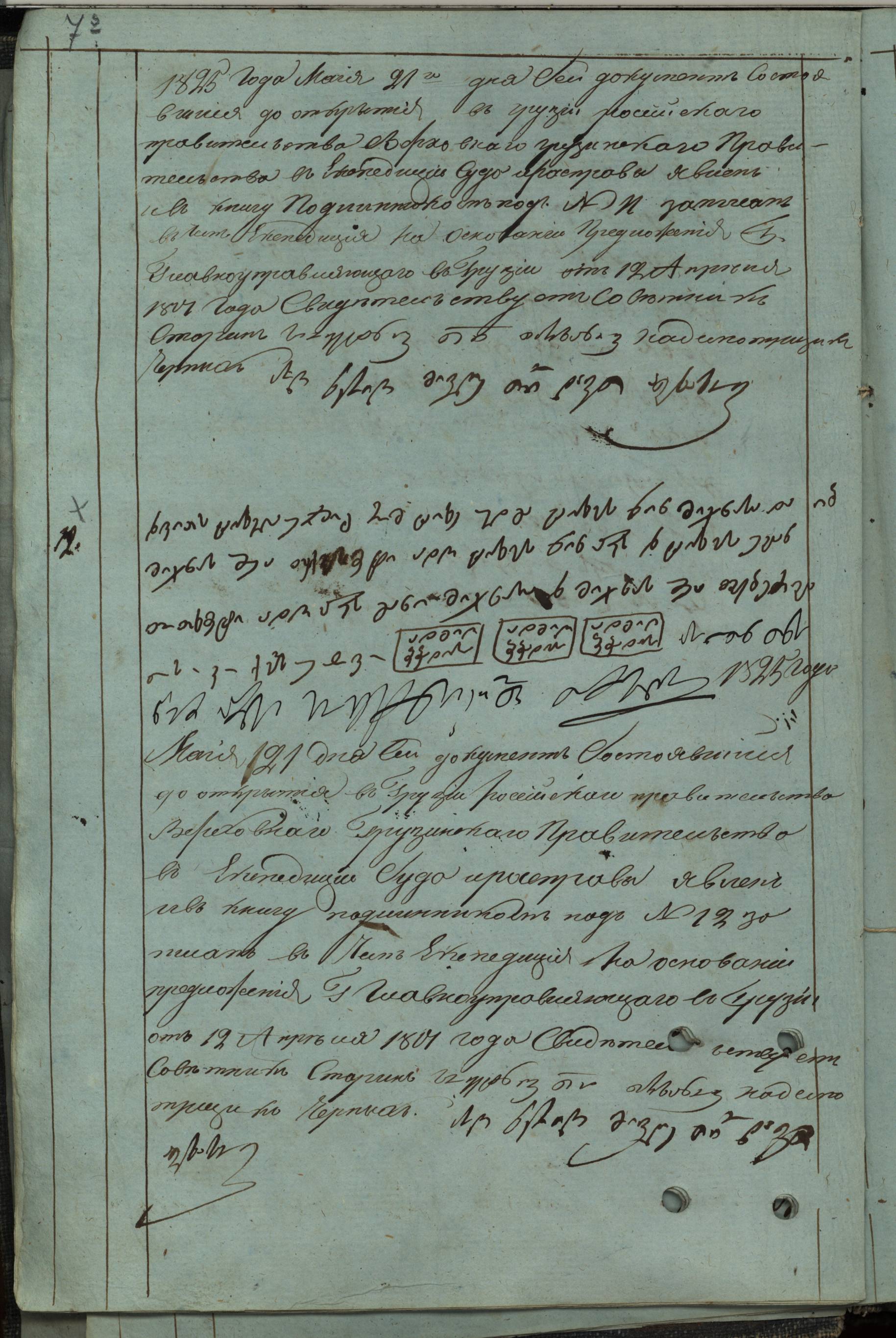 რეგისტრირებულია რუსული ადმინისტრაციის მიერ 1825 წ. 21 მაისს, სოვეტნიკი დიმიტრი თარხანოვი.