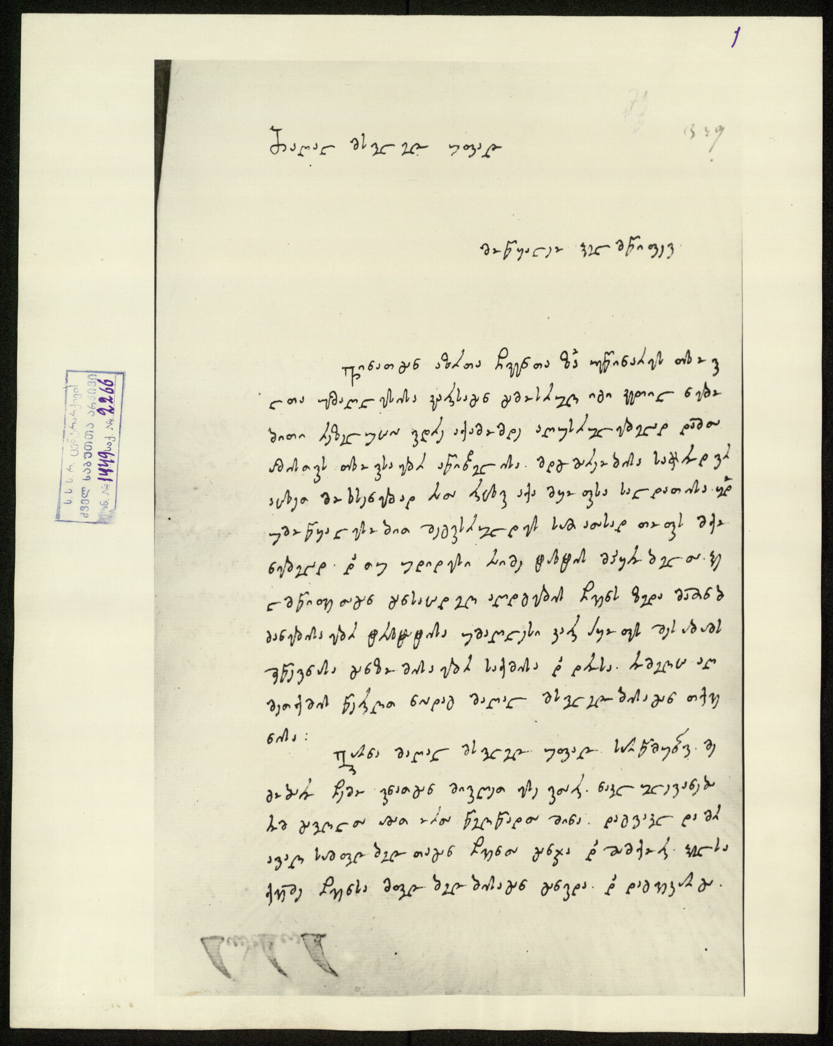 საბუთი ჩამოტანილია მოსკოვის არქივიდან 1961 წ. ავთანდილ იოსელიანის მიერ.