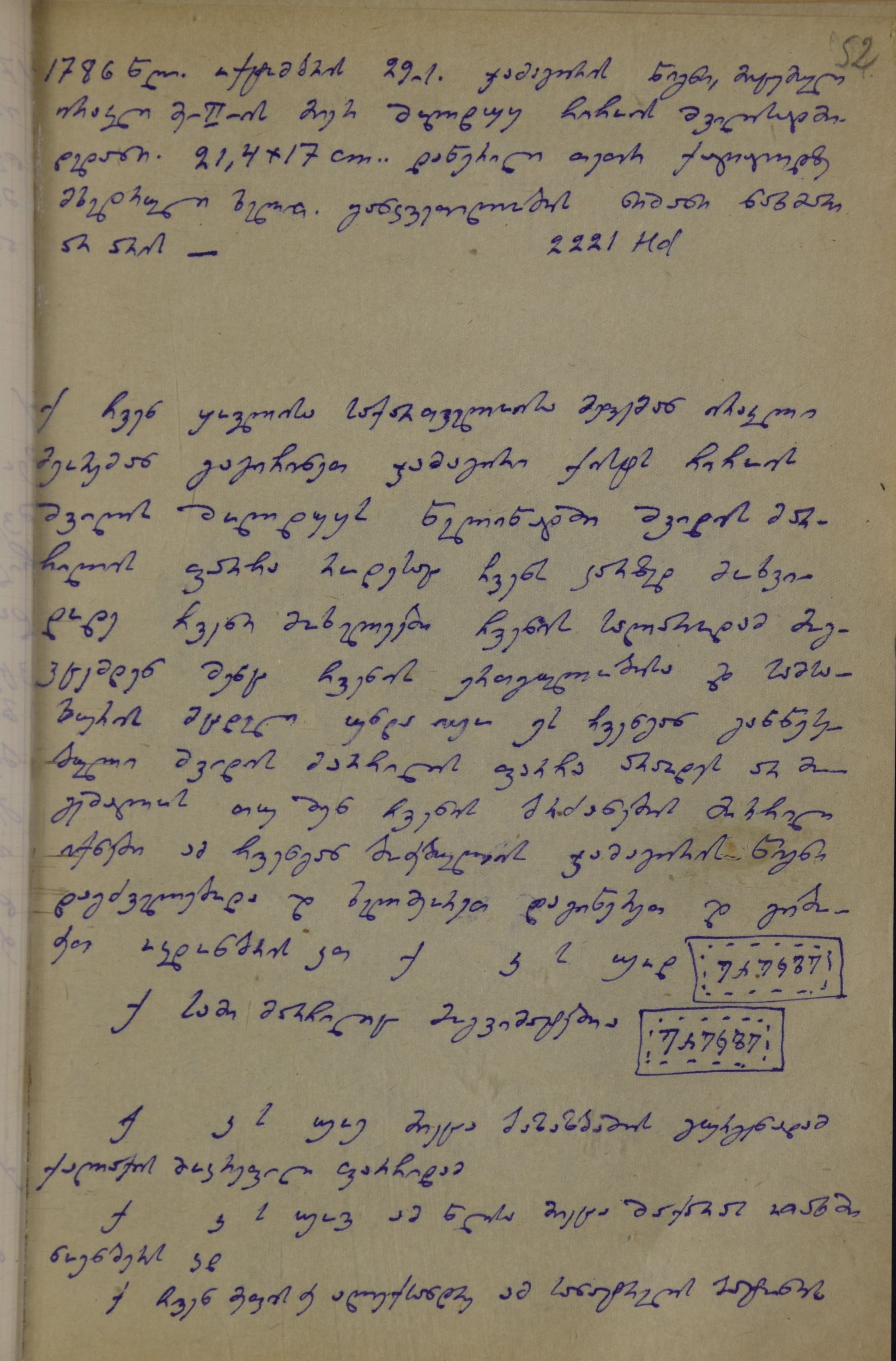 3. დედნის აღწერა გიორგი ბოჭორიძის მიერ: ,,დედანი, 21,4X17 cm., დაწერილი თეთრ ქაღალდზე მხედრული ხელით. განკვეთილობის ნიშანი ნახმარი არ არის".
