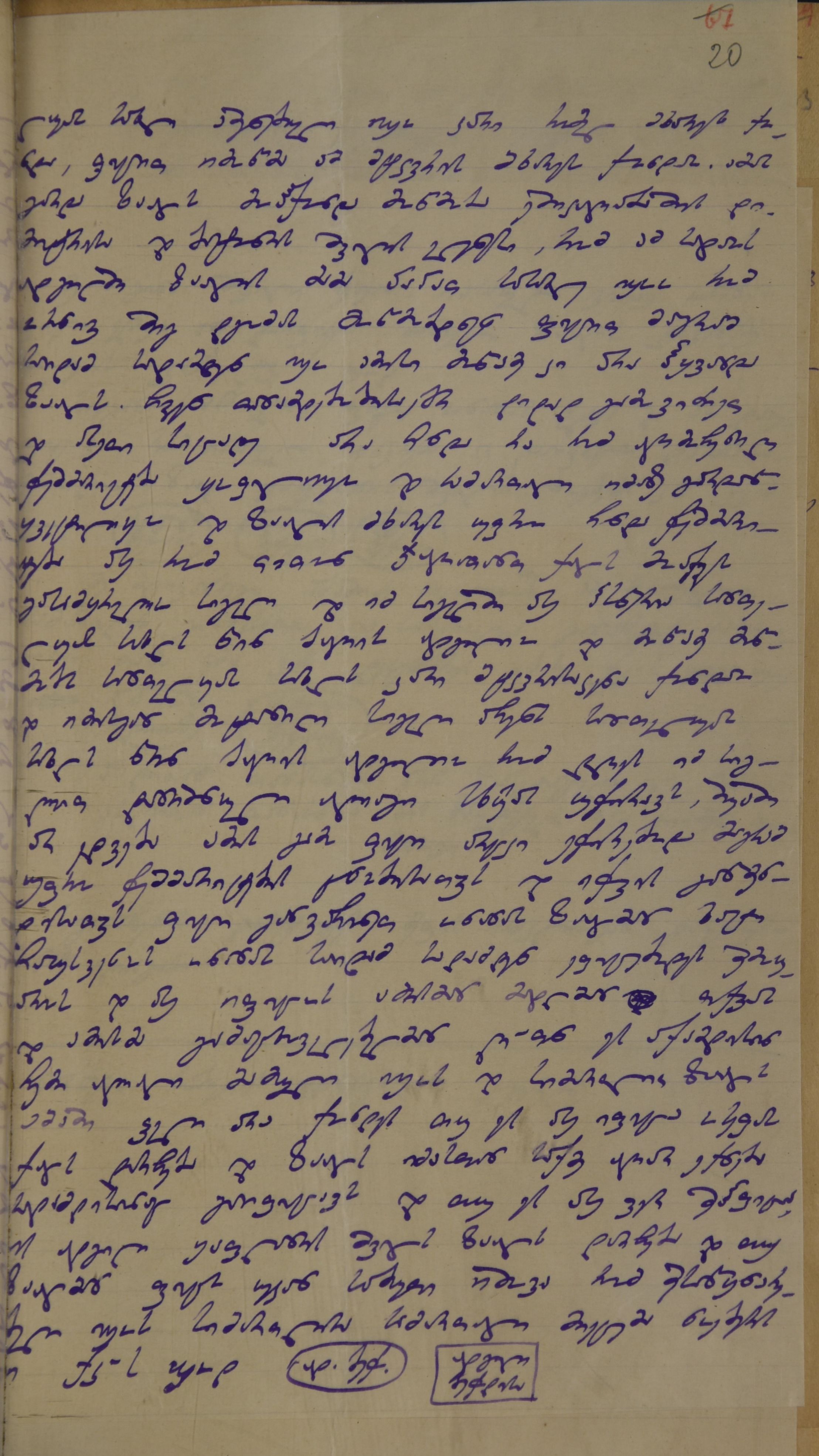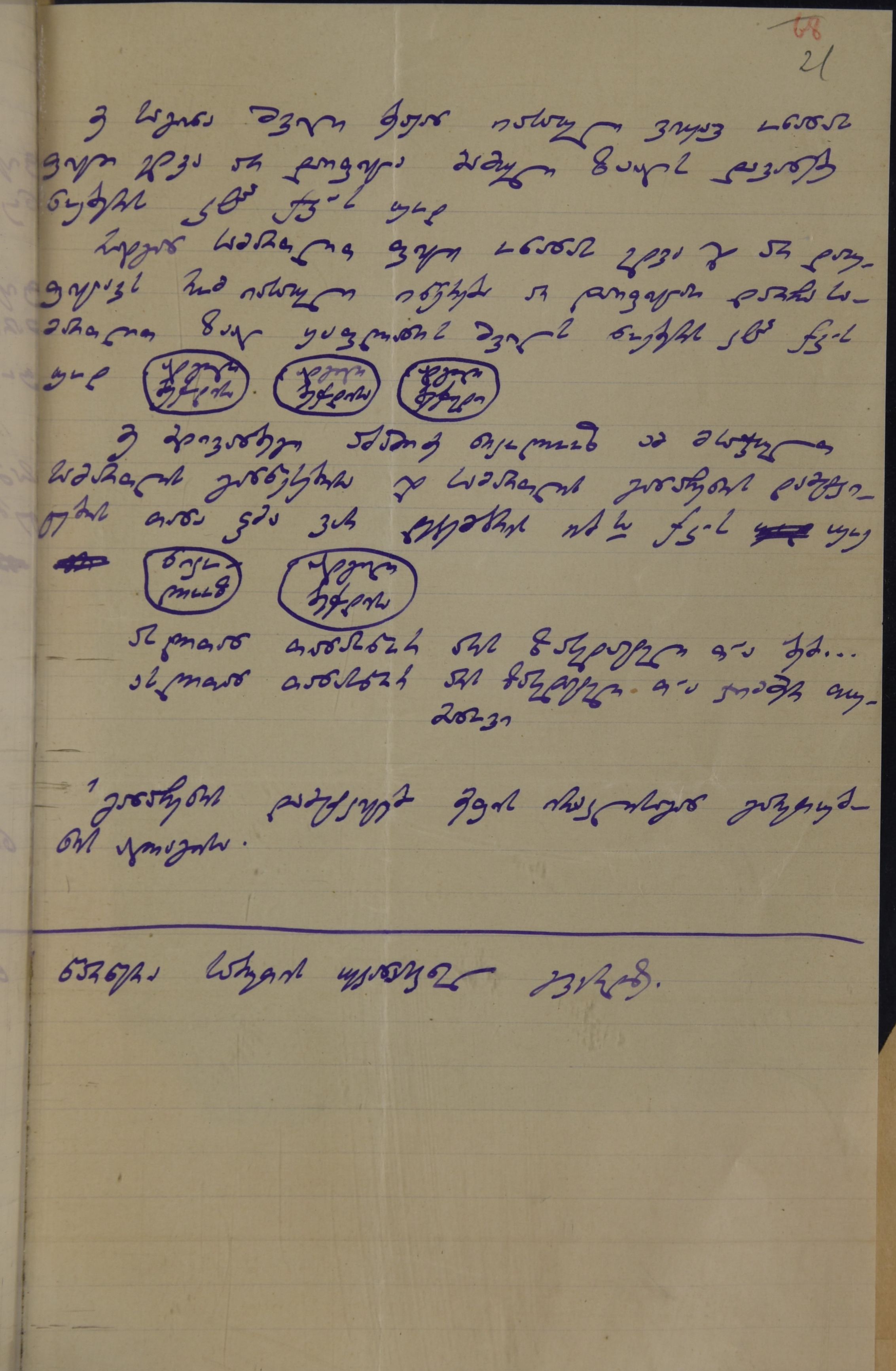 ქაღალდი მოთეთრო შავი ჰორიზონტალური ხაზებით, დაწერილი ლურჯი მელნით