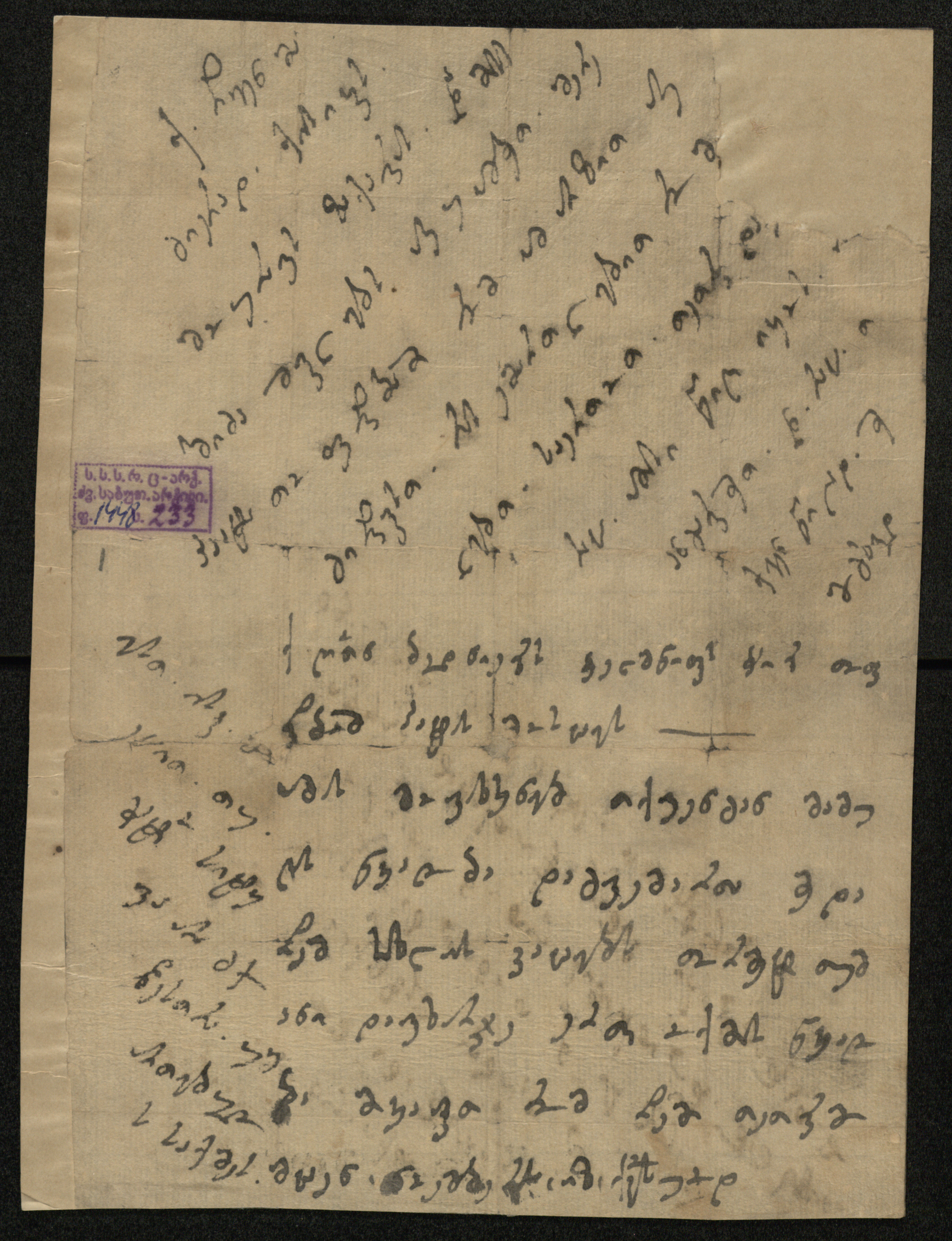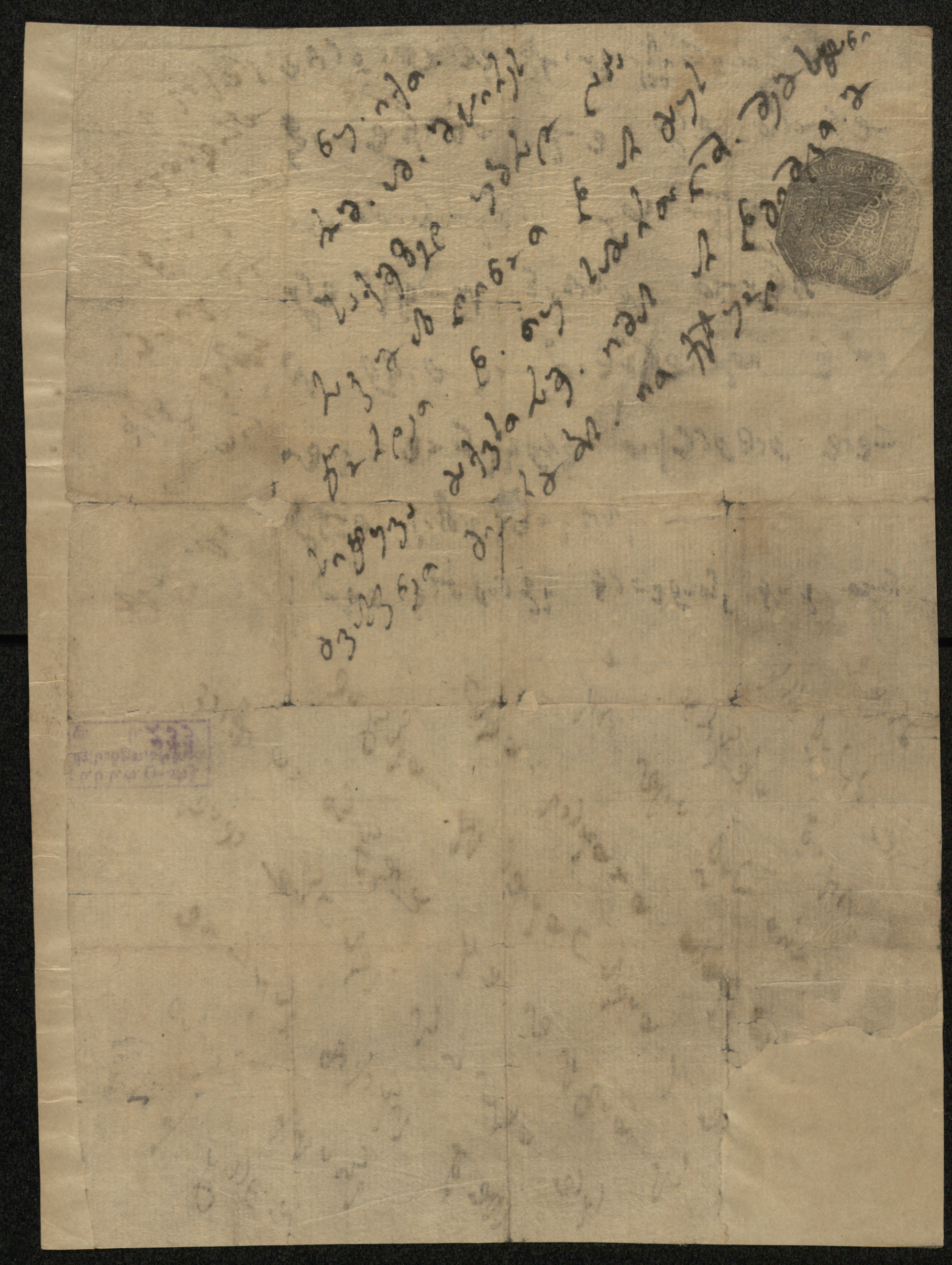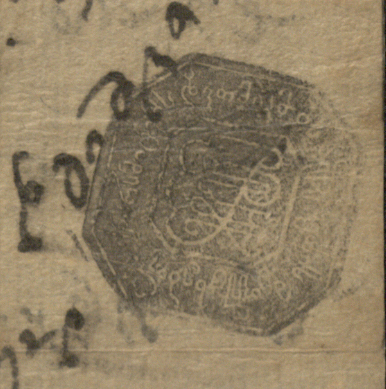 ჭვირნიშნიანი ქაღალდი ღია ყავისფერი, შესრულებული ყავისფერი და შავი მელნით