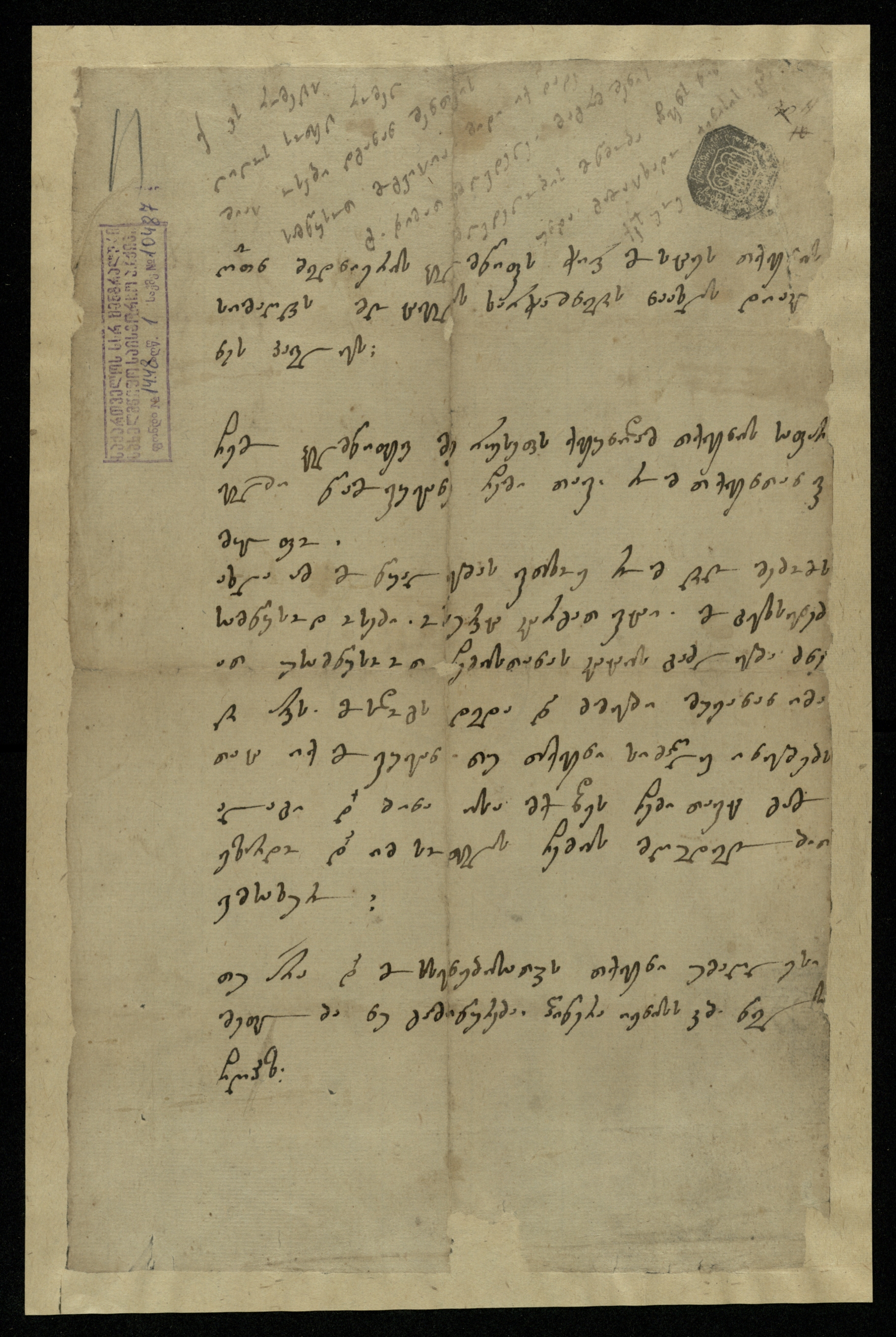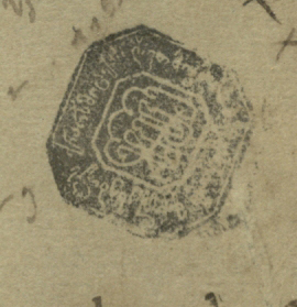 ნაცრისფერი ქაღალდი ჭვირნიშნით, შესრულებული შავი მელნით
