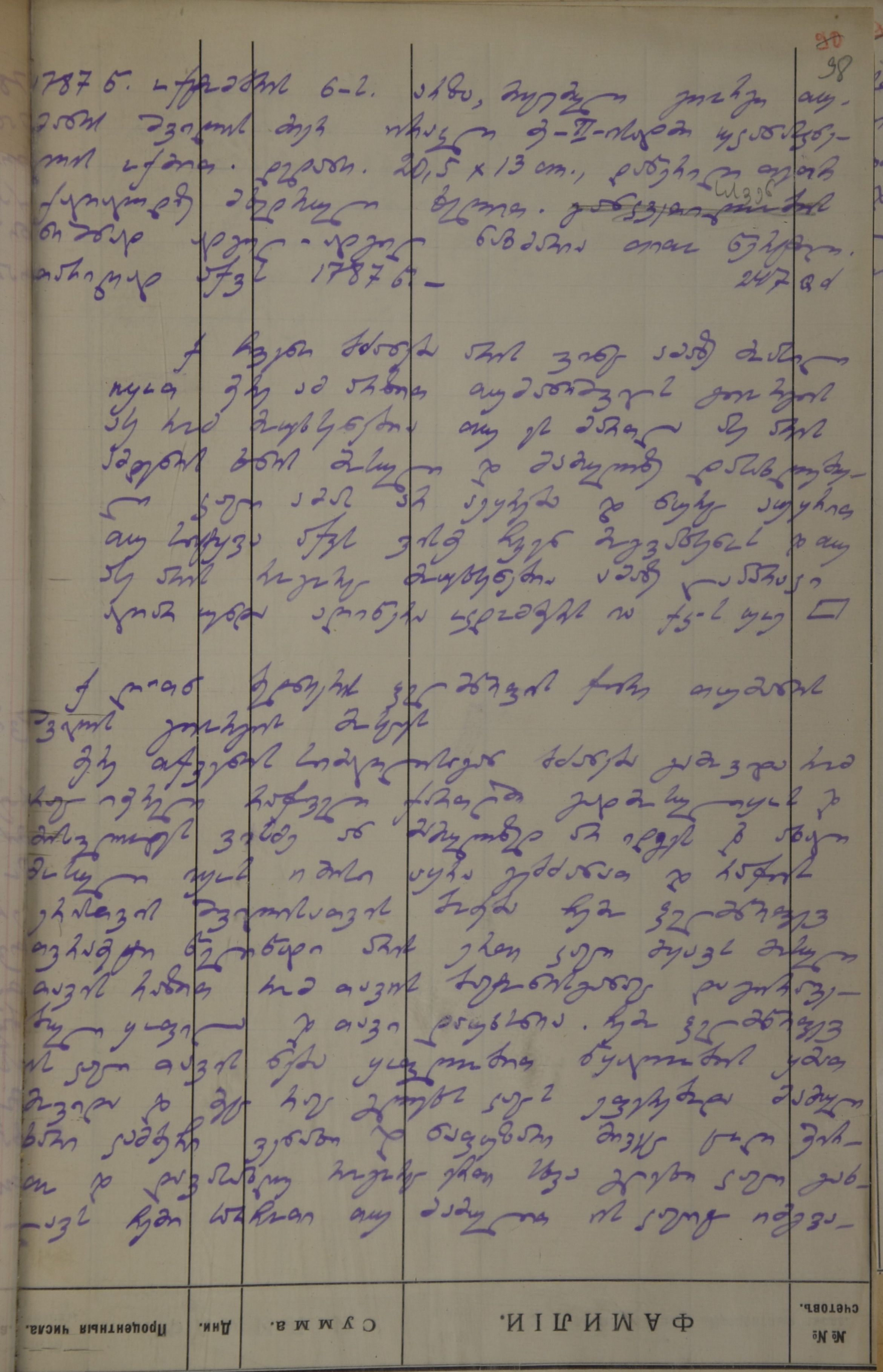 2. დედნის აღწერა გიორგი ბოჭორიძის მიერ: დედანი, 20,5X 13 CM; დაწერილი თეთრ ქაღალდზე მხედრული ხელით; განკვეთილობის ნიშნად ადგილ-ადგილ ნახმარია თითო წერტილი".