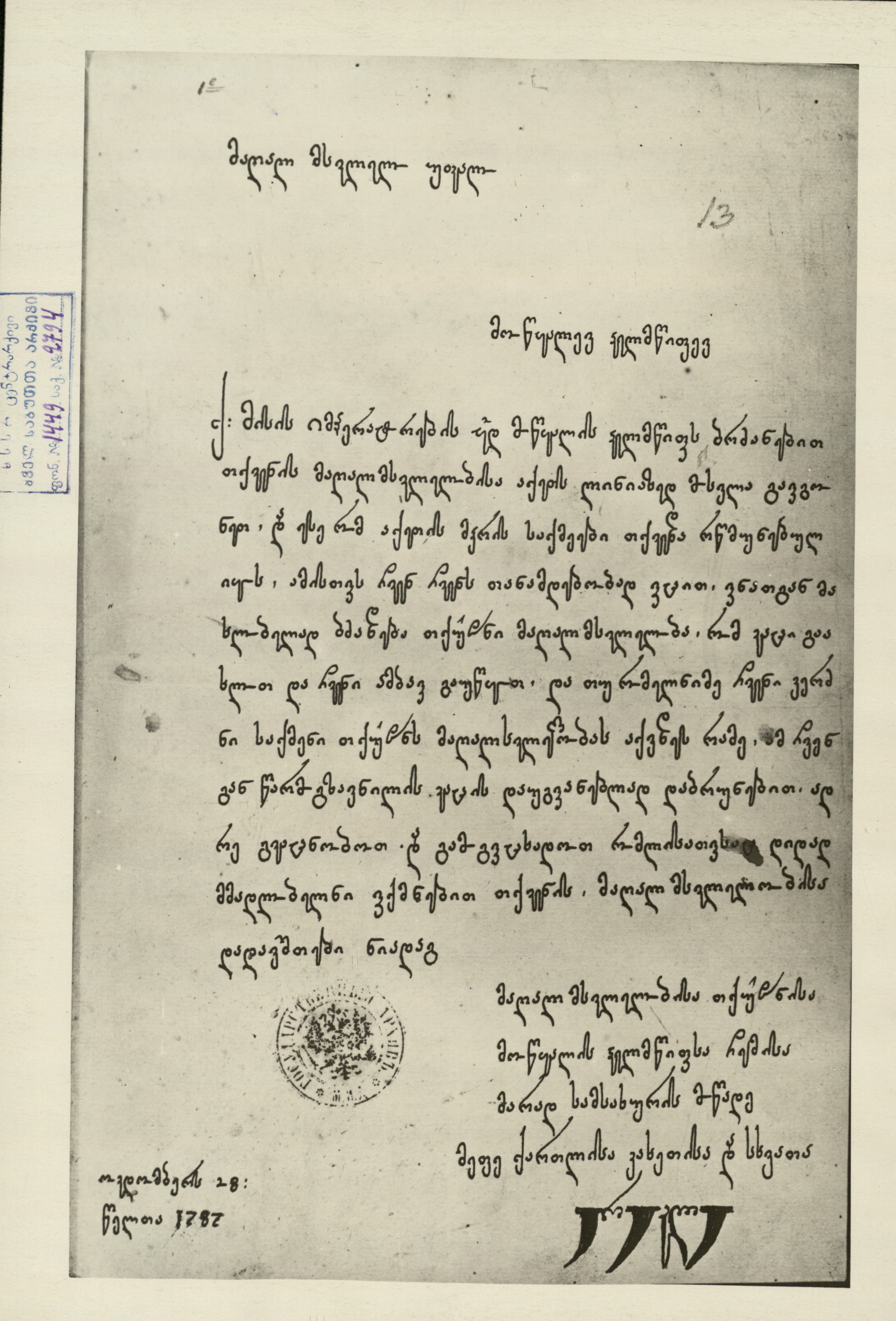საბუთი ჩამოტანილია მოსკოვის არქივიდან 1961 წ. ავთანდილ იოსელიანის მიერ.