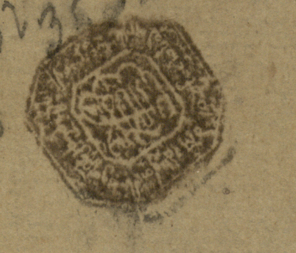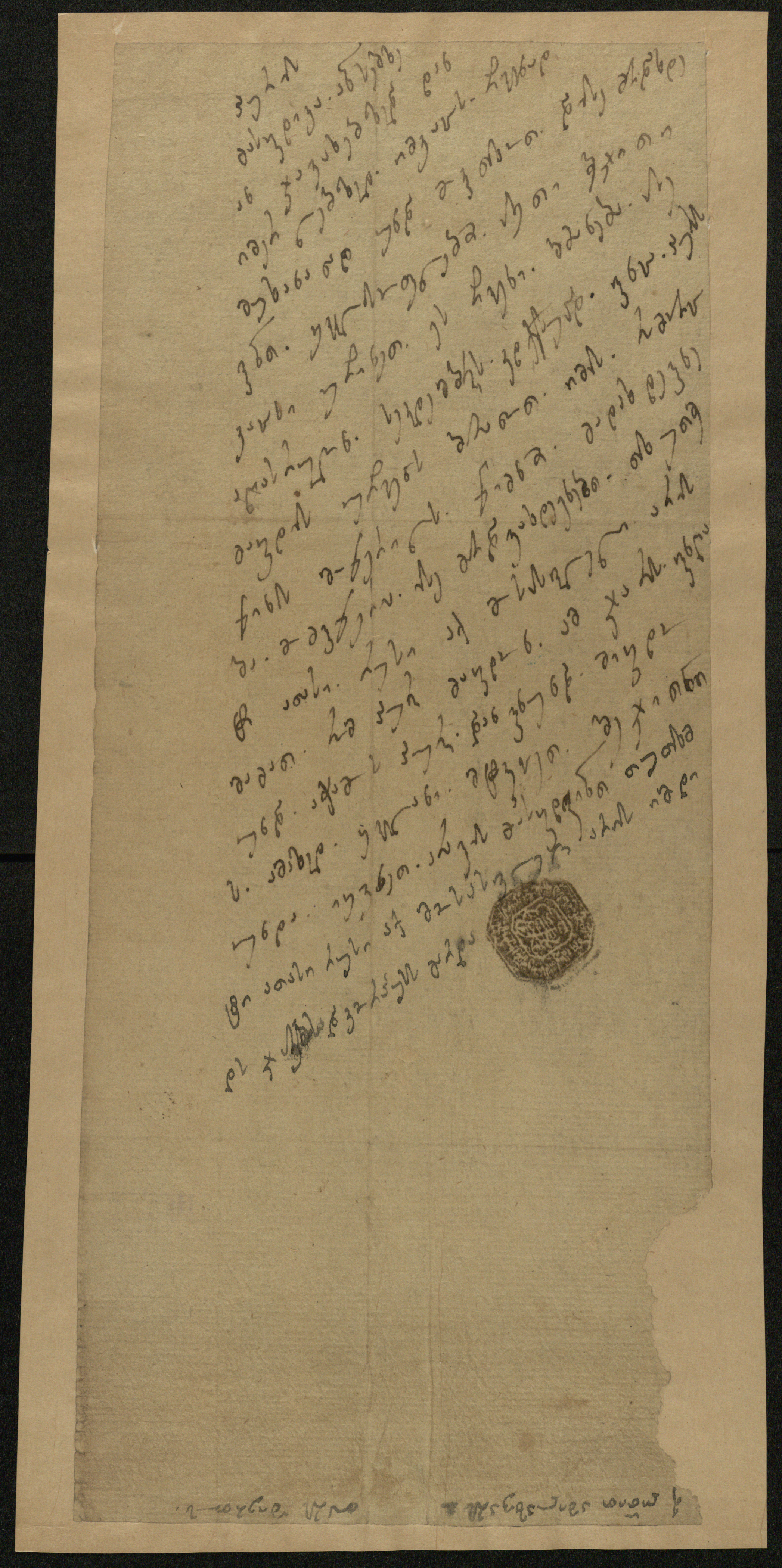 ნაცრისფერი ქაღალდი ჭვირნიშნით, შესრულებული შავი და ყავისფერი მელნით