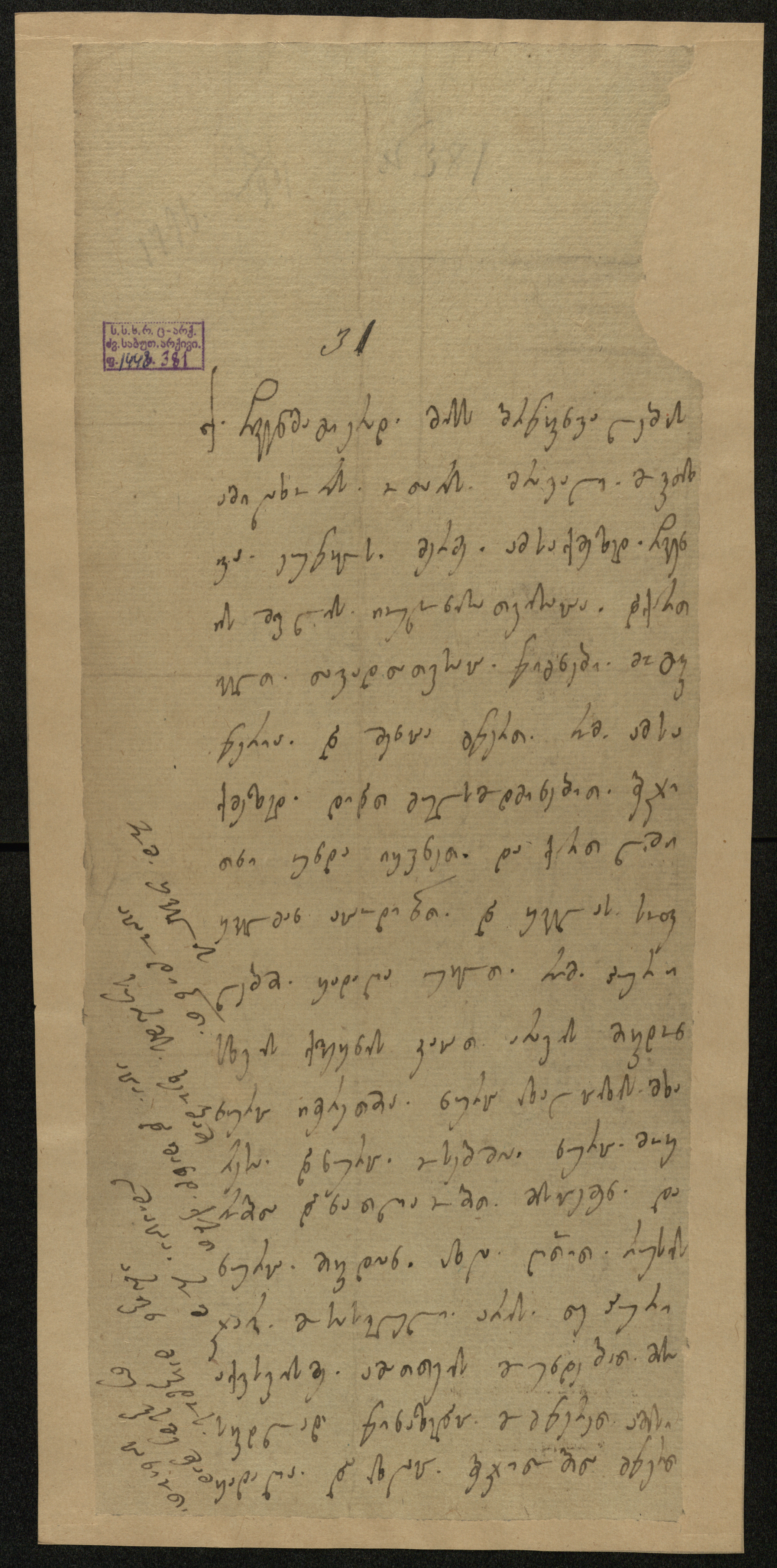 პირი, ფ.1461, 11/35, გვ.11r, გადაწერილი პ. კარბელაშვილის მიერ; პირს ახლავს მინაწერი გადამწერის ხელით: ,,ზევიდამ დაწერილია და წაშლილია ირაკლის ხელით, სხვა მელნით“