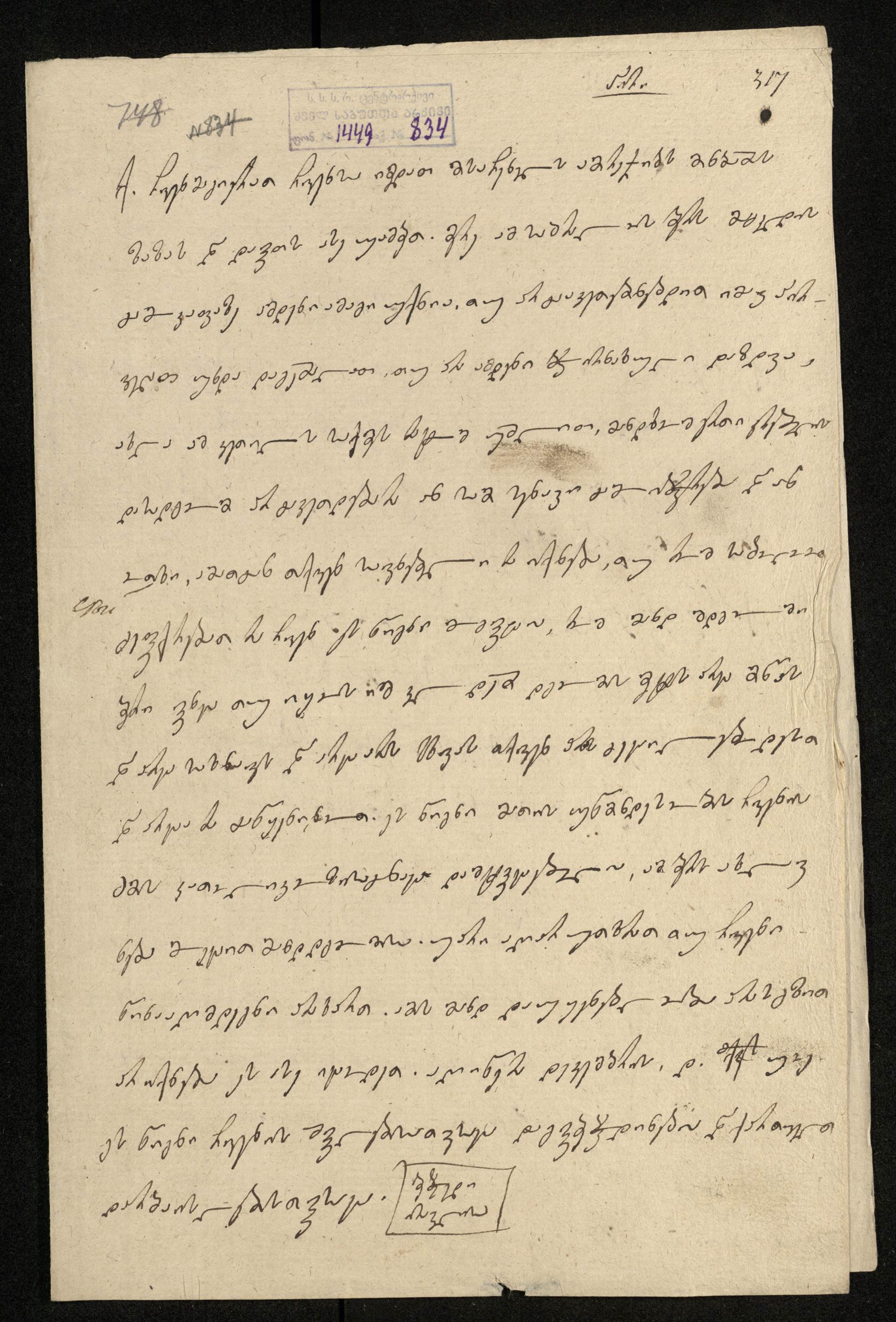 3. გადაწერილი პირის სისწორეს ადასტურებს სოვეტნიკი ორბელიანი: ,,ასლთან თანასწორეთ არის შემოწმებული. სოვეტნიკი თ(ავად)ი ორბელიანოვი".