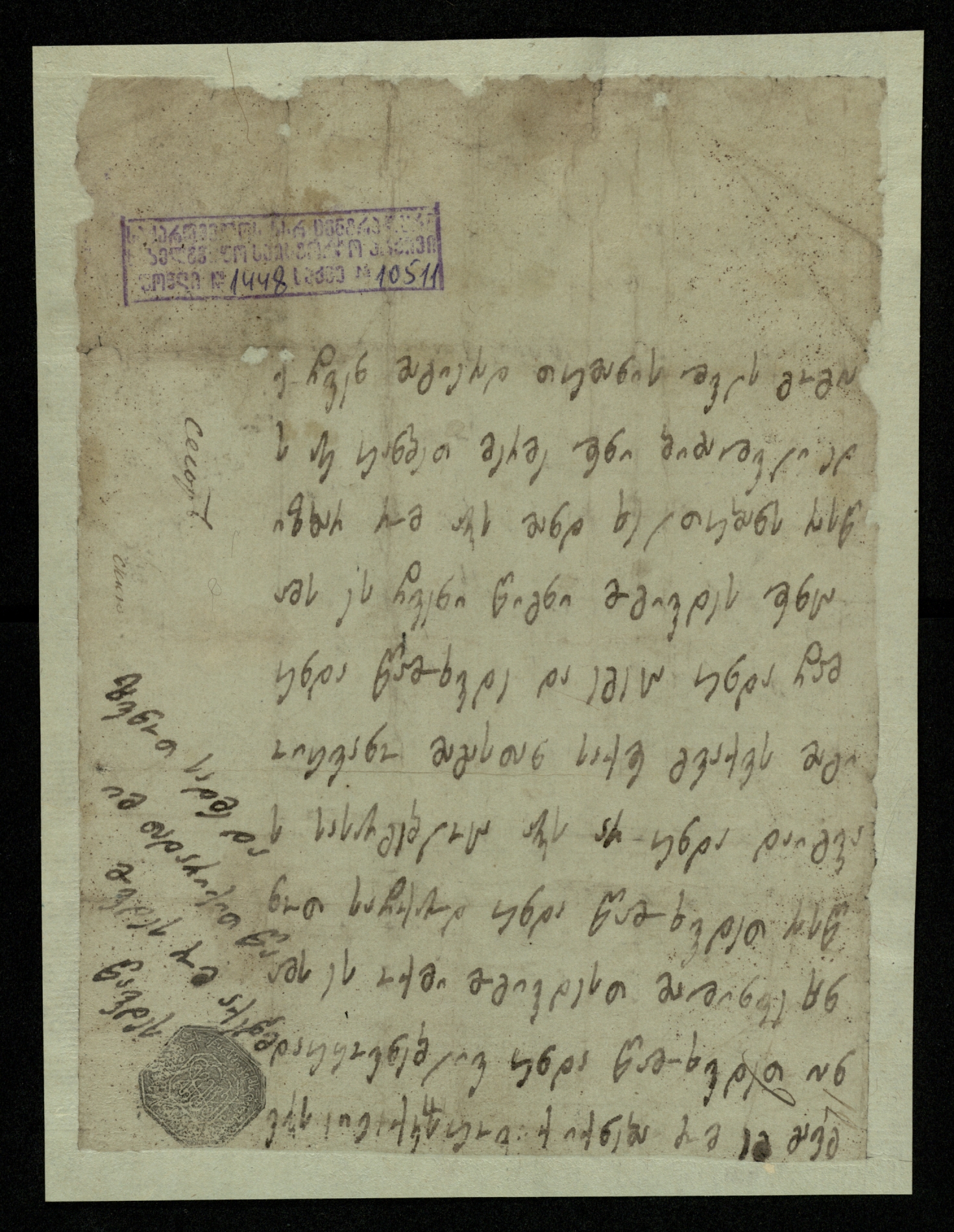 მინაწერი: ,,თუმანიშვილისაგან ანდ.. შვილს გიორგის მიუვიდეს“.