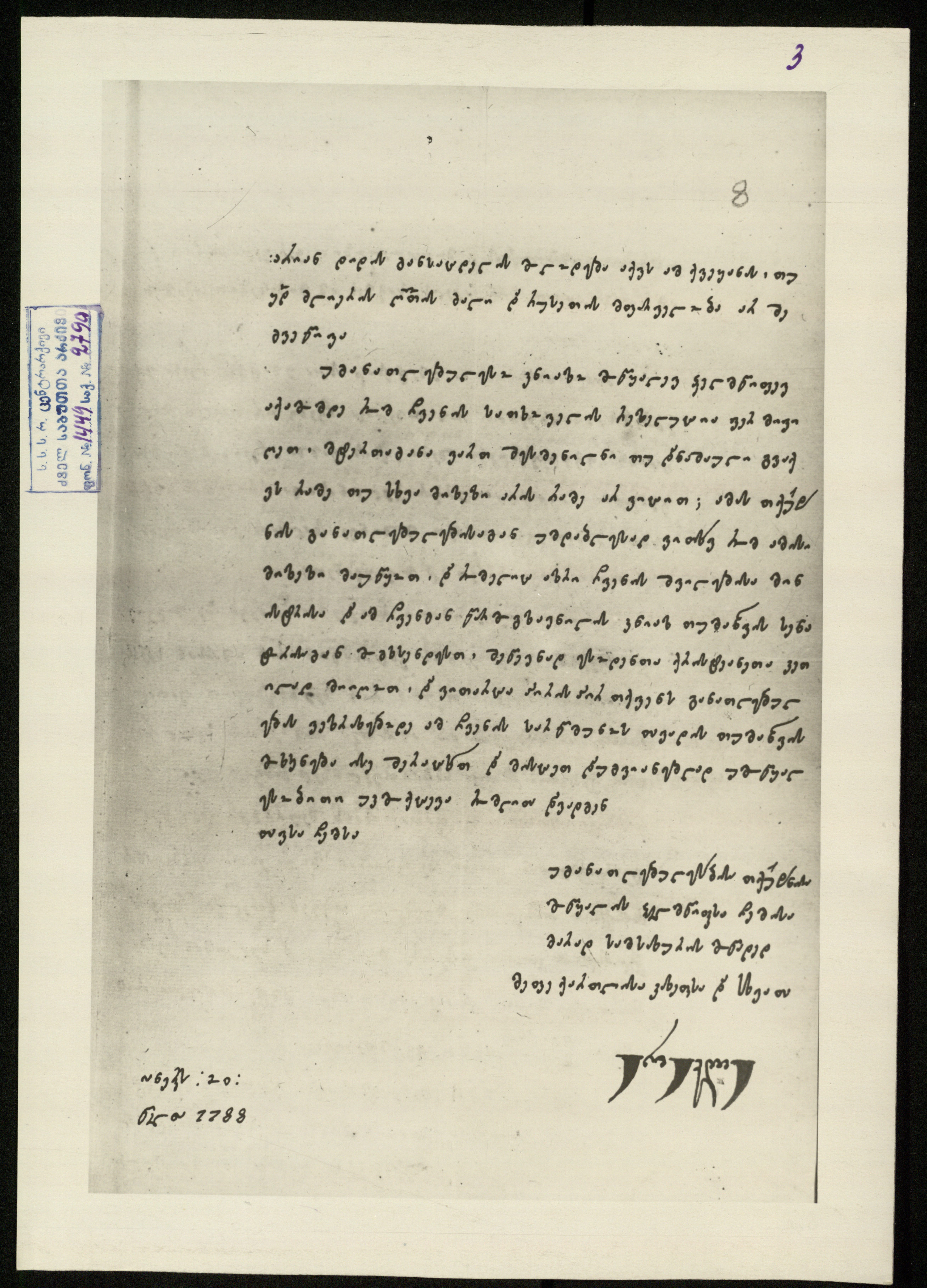 საბუთი ჩამოტანილია მოსკოვის არქივიდან 1961 წ. ავთანდილ იოსელიანის მიერ.