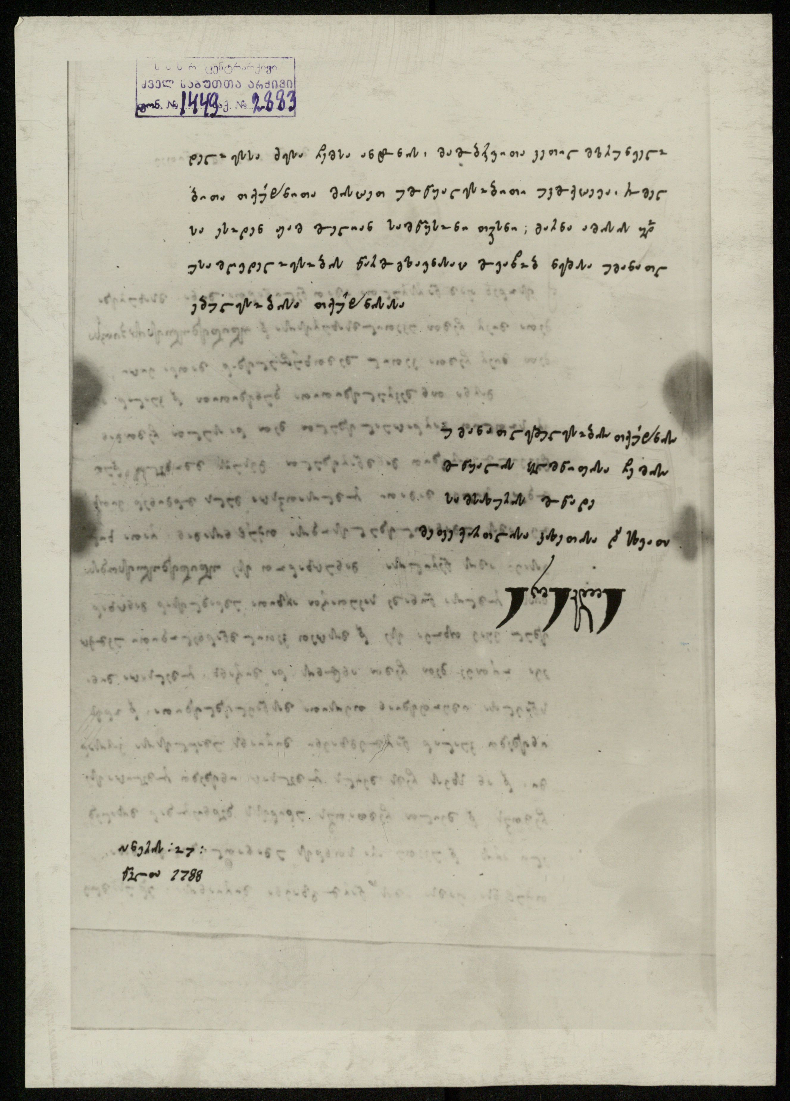 საბუთი ჩამოტანილია მოსკოვის არქივიდან 1961 წ. ავთანდილ იოსელიანის მიერ