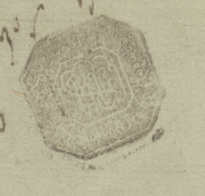 მწვანე ქაღალდი ჭვირნიშნით, შესრულებული ყავისფერი მელნით