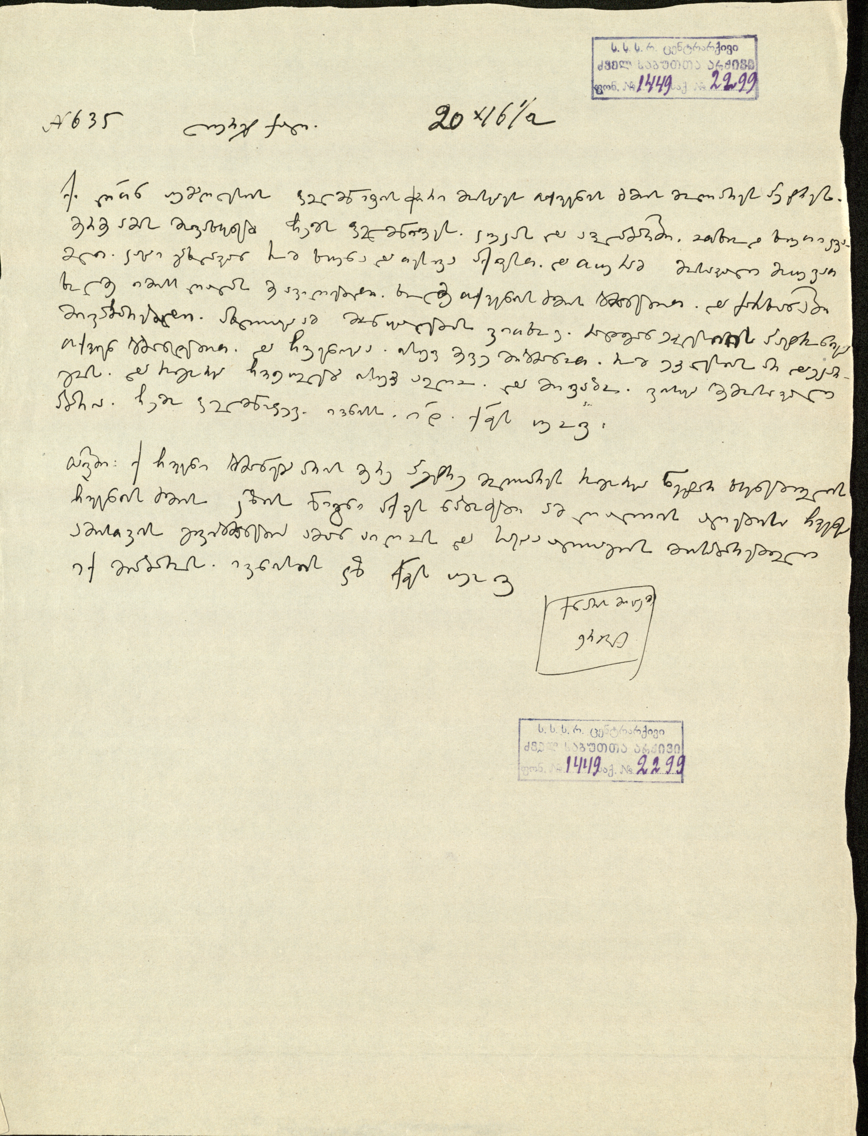 2. სარგის კაკაბაძეს მითითებული აქვს საბუთის დედნის აღწერილობა, ზომა: ,,ლურჯ. ქაღ. 20X161/2“ და ძველი საარქივო-სააღრიცხვო ნომერი: N635.