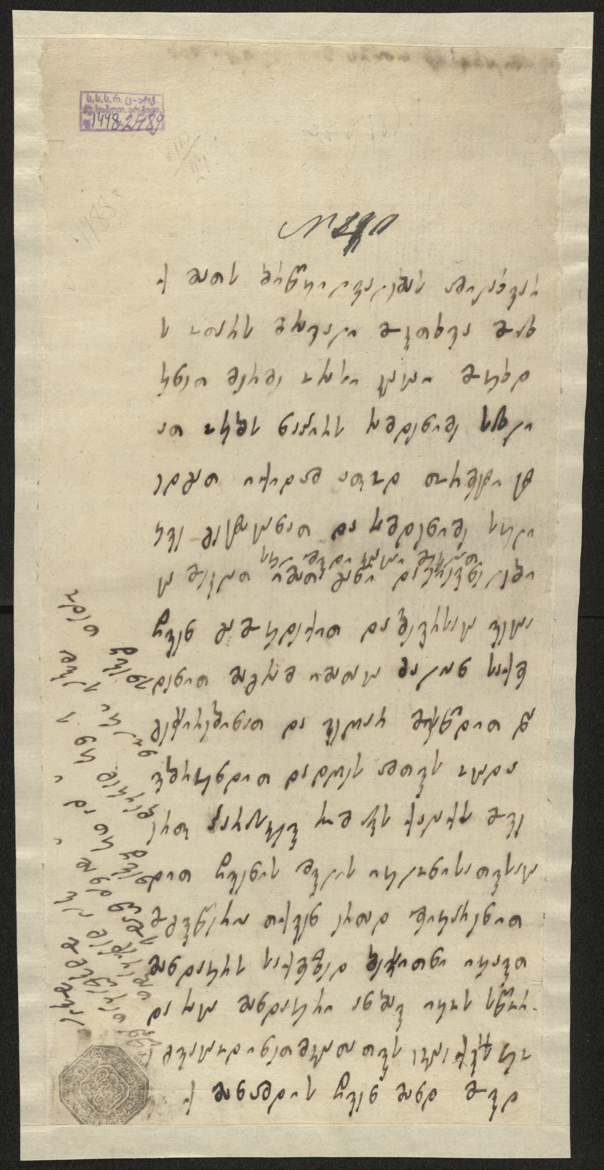 მინაწერი V-ზე: ,,ქ. ამილახვარს ოთარ მიუვიდეს".