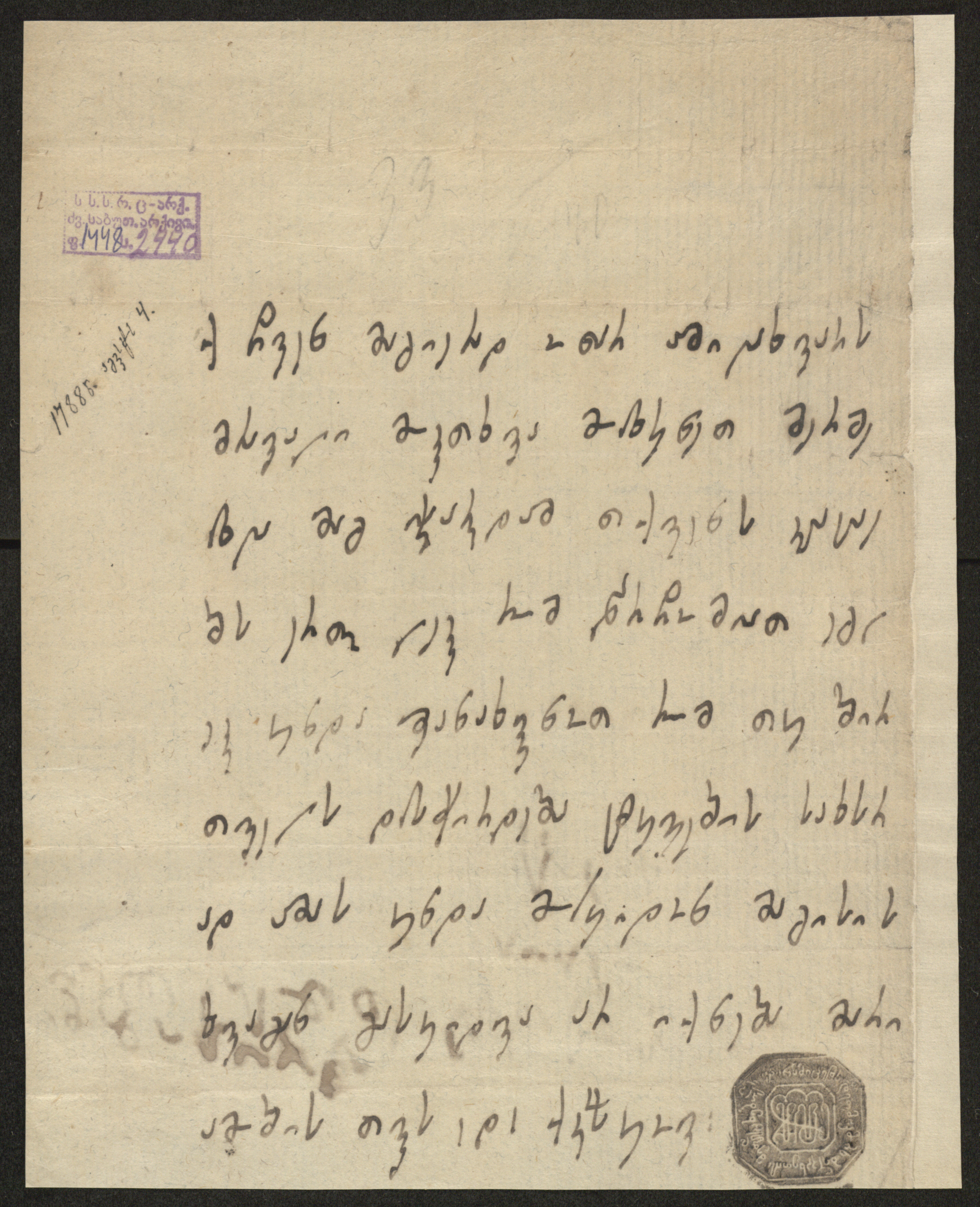 ჭვირნიშნიანი ქაღალდი თეთრი, შესრულებული ყავისფერი მელნით