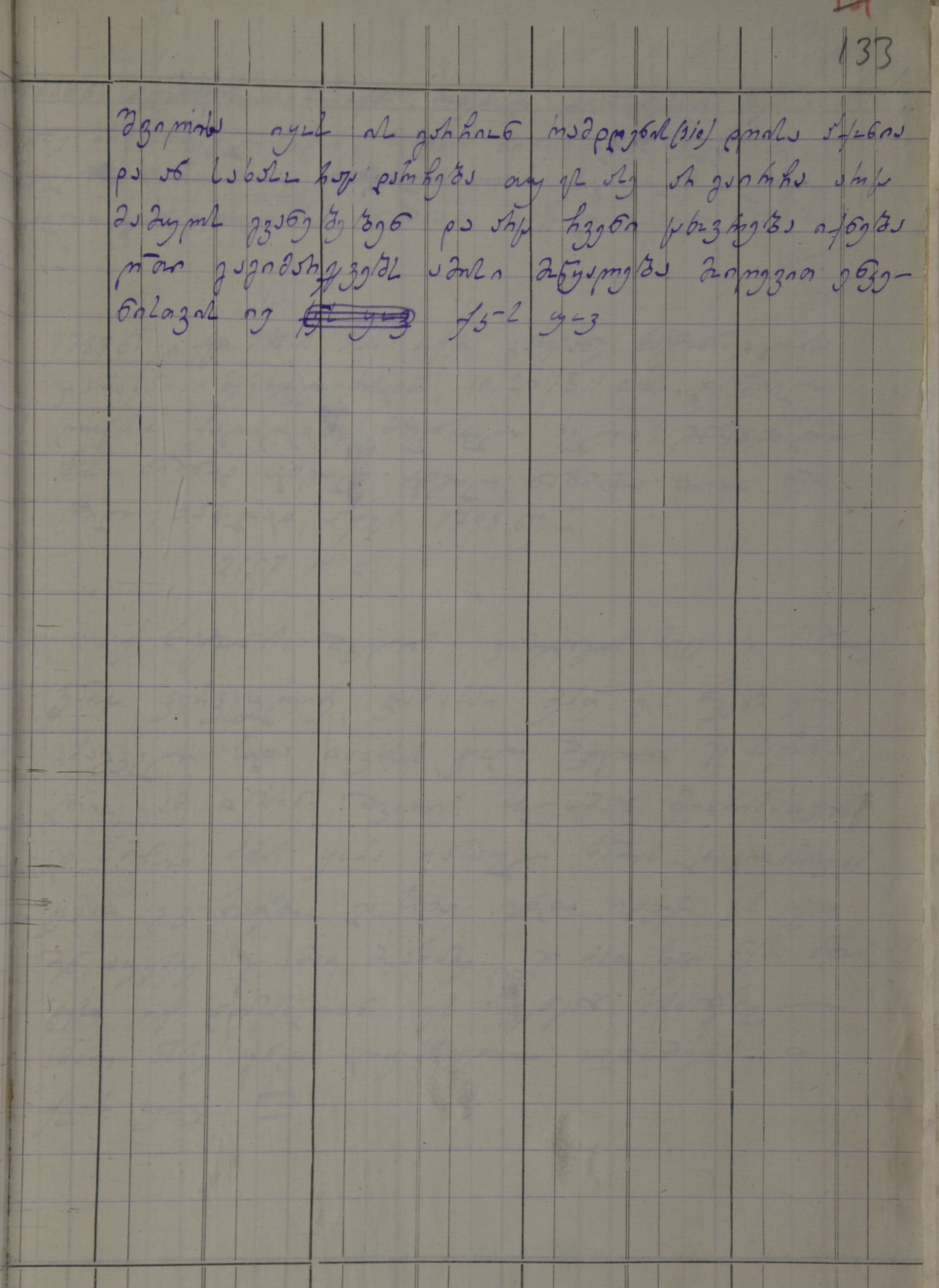 ქაღალდი თეთრი შავი ხაზებით, დაწერილი ლურჯი მელნით