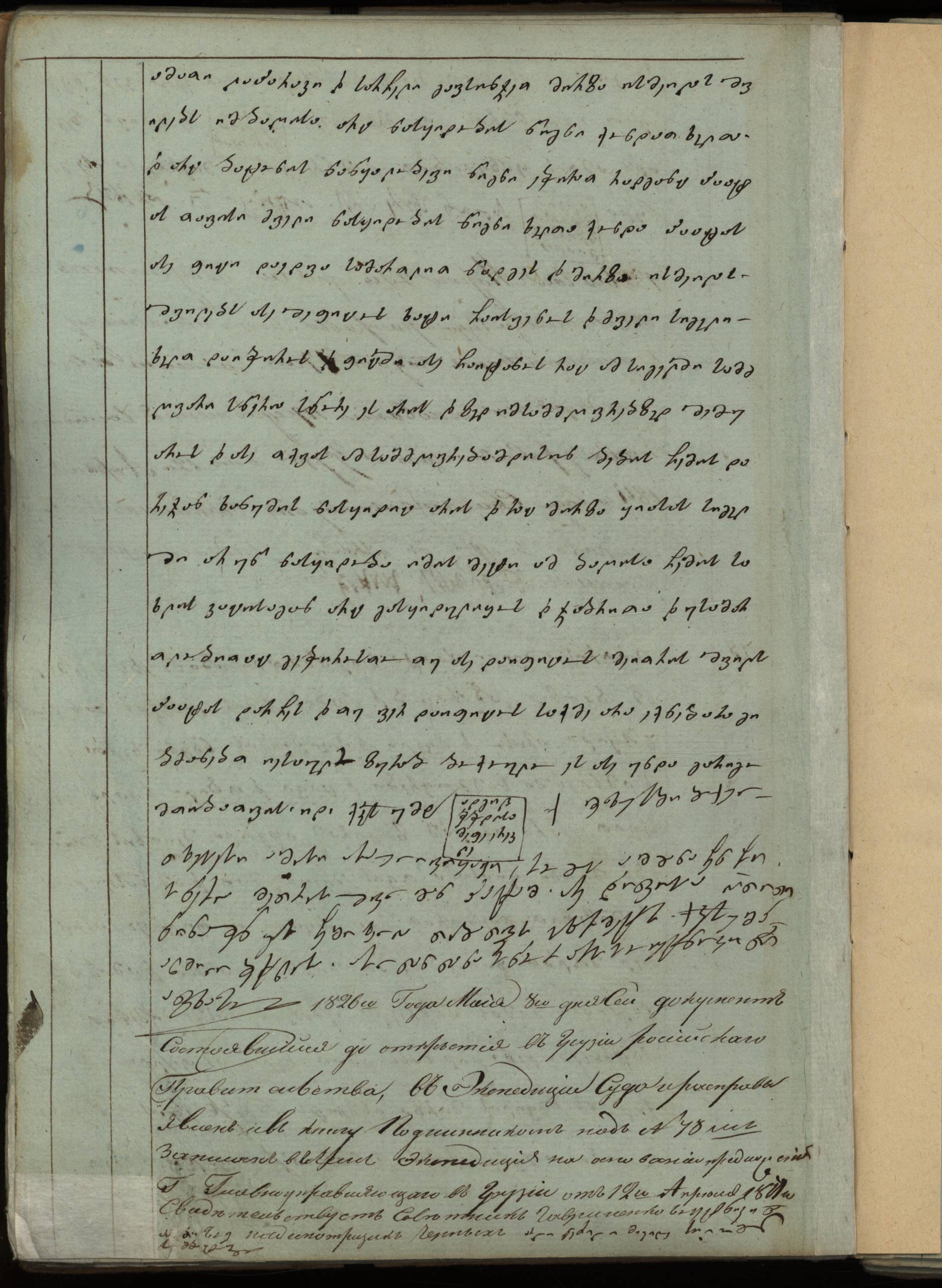 ქაღალდი ცისფერი, დაწერილი შავი მელნით.