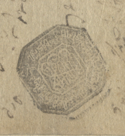 ნაცრისფერი ქაღალდი ჭვირნიშნით, შესრულებული შავი მელნით