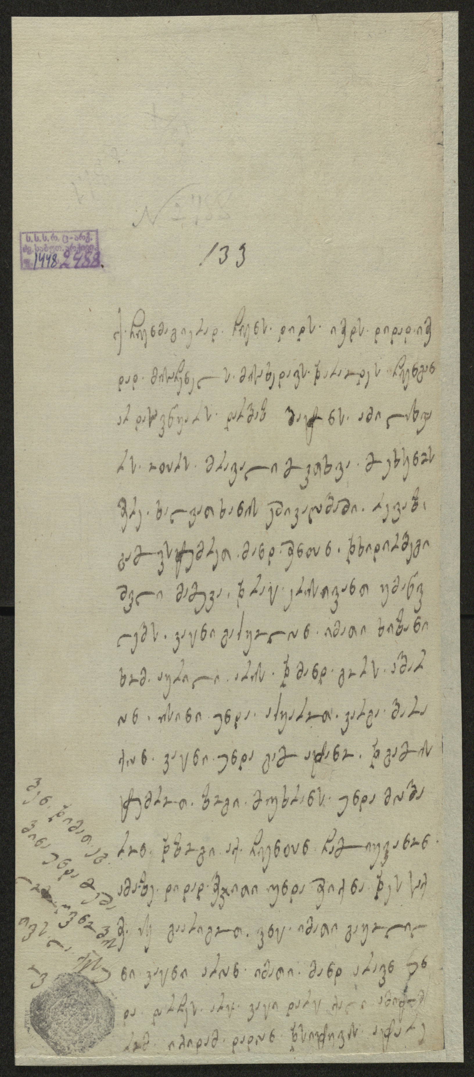 ჭვირნიშნიანი ქაღალდი ღია მწვანე, შესრულებული შავი მელნით
