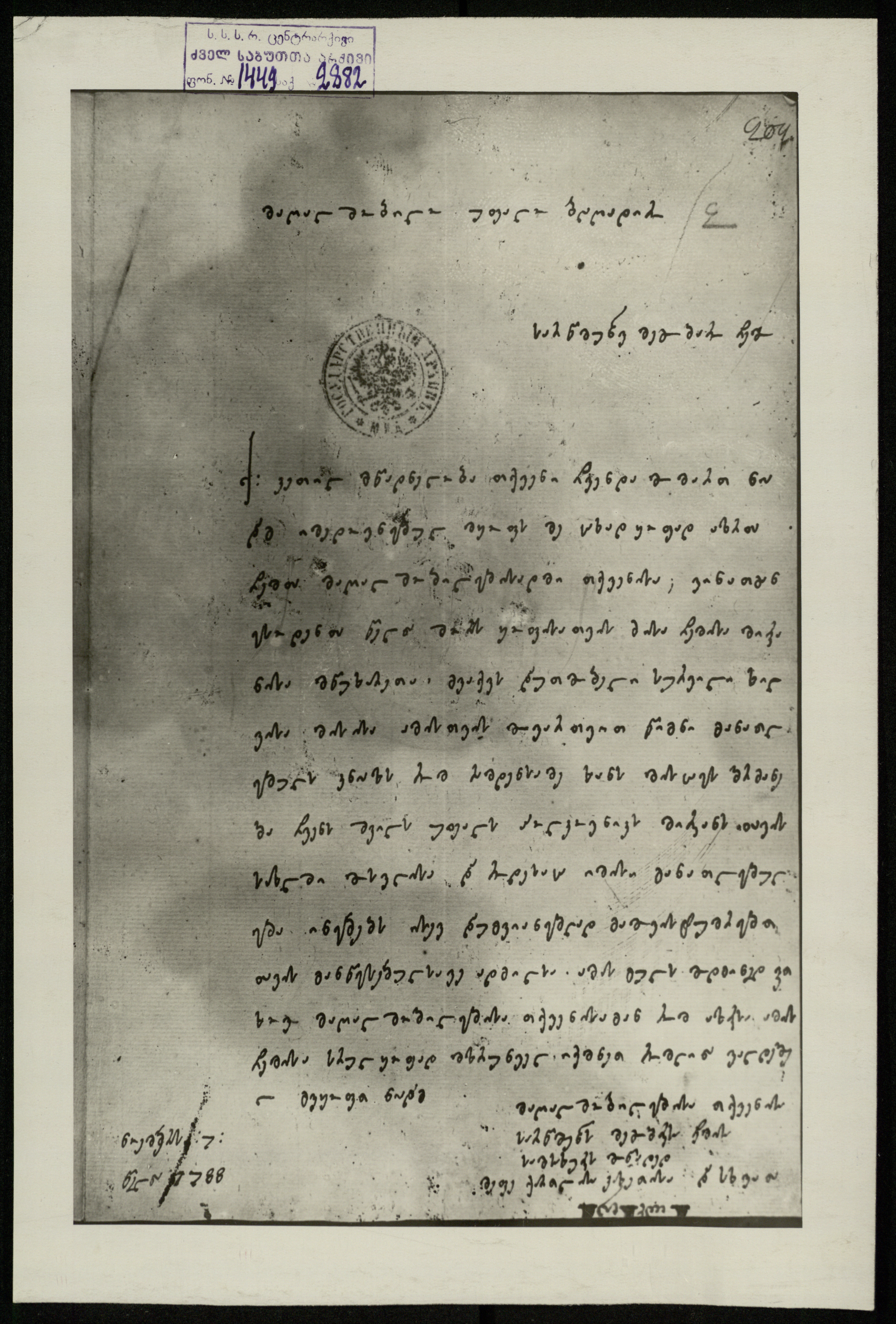 საბუთი ჩამოტანილია მოსკოვის არქივიდან 1961 წ. ავთანდილ იოსელიანის მიერ