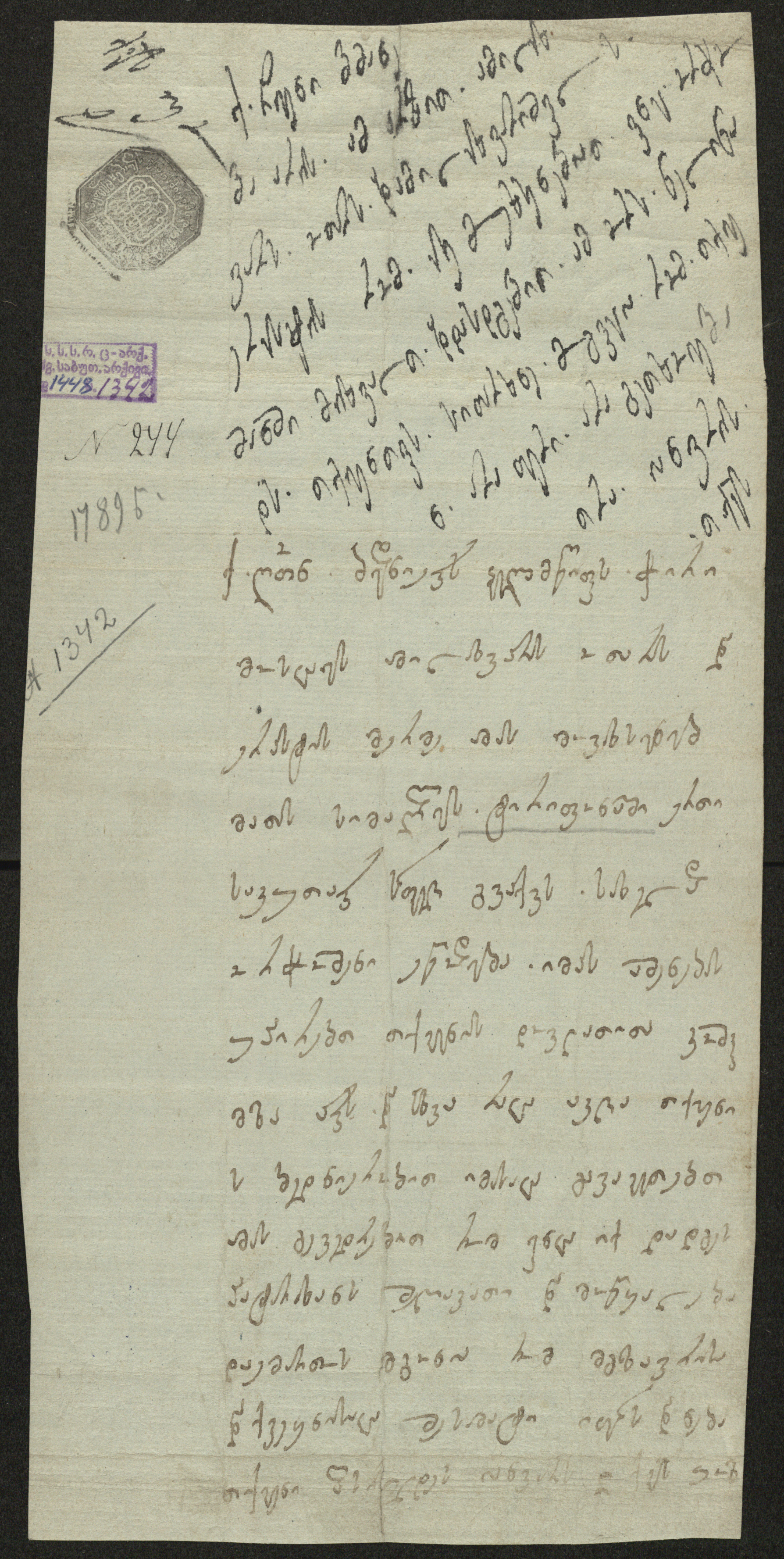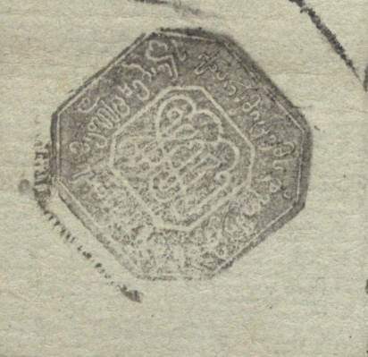 ჭვირნიშნიანი ქაღალდი მწვანე, შესრულებული ყავისფერი და შავი მელნით
