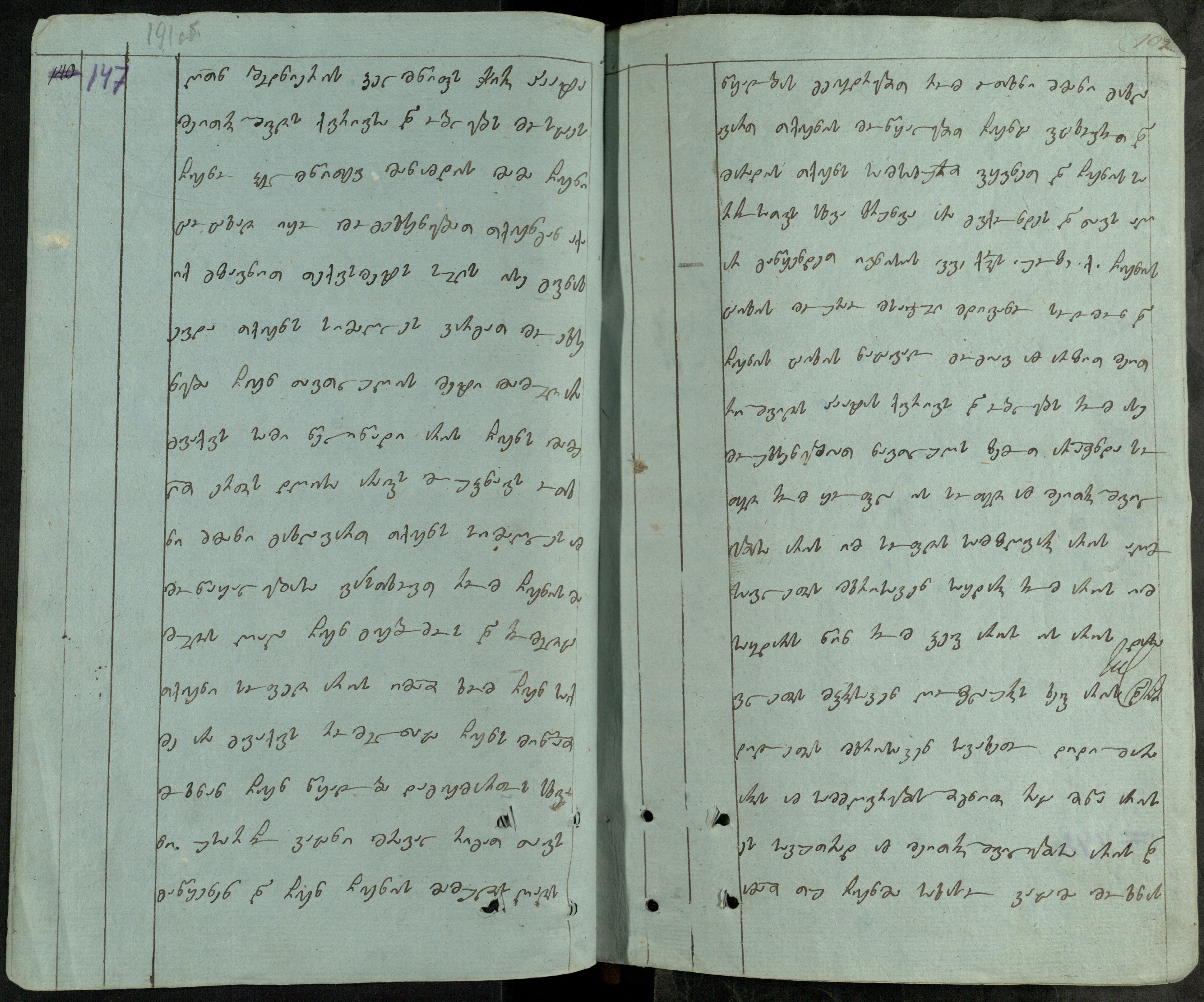 ქაღალდი ცისფერი დაწერილი შავი მელნით