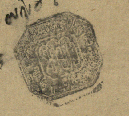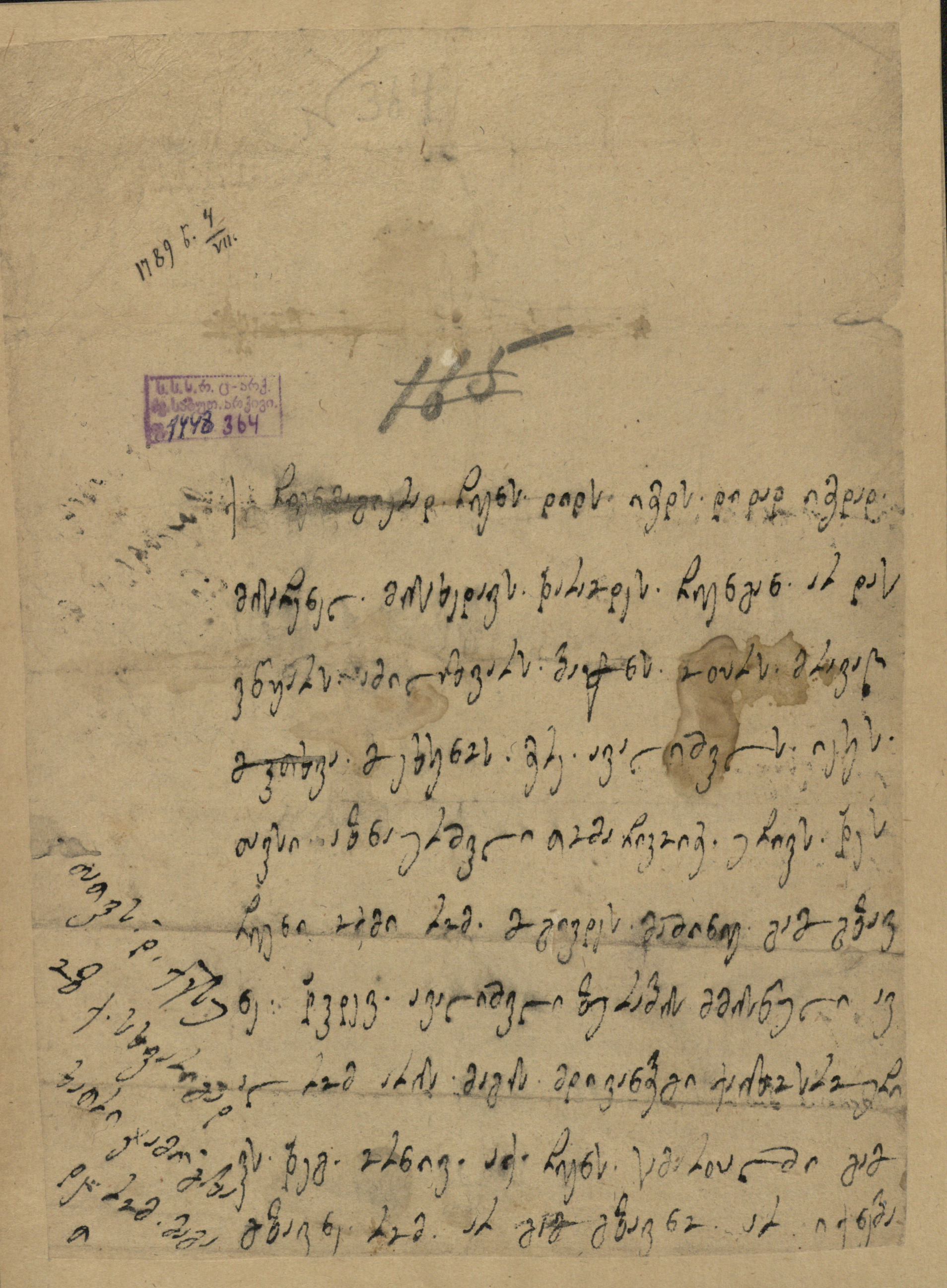 ყავისფერი ქაღალდი ჭვირნიშნით, შესრულებული შავი მელნით