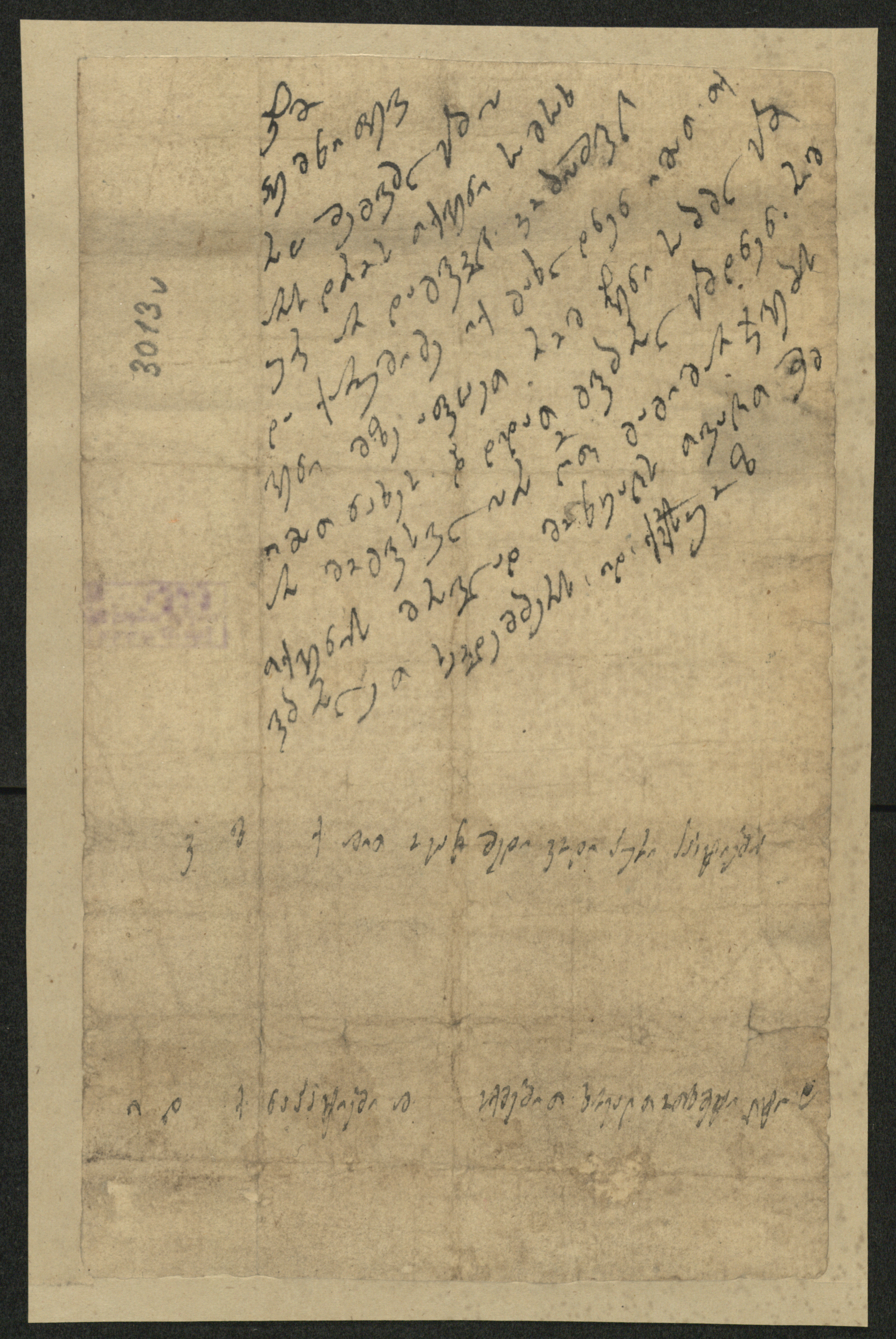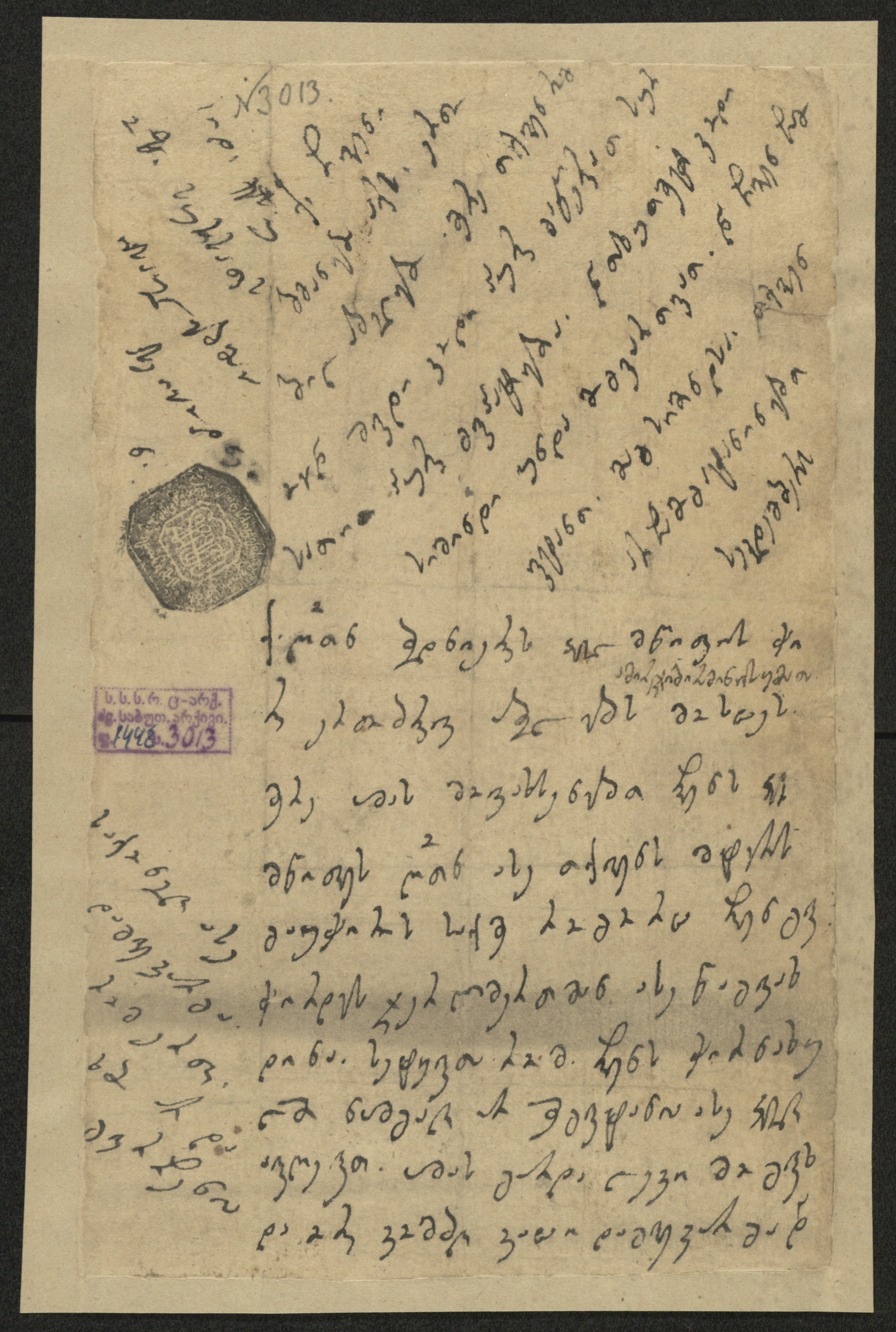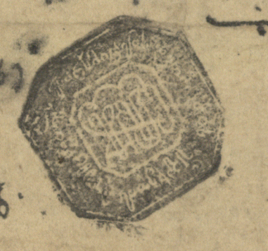 ყავისფერი ქაღალდი, ჭვირნიშნით, შესრულებული შავი მელნით
