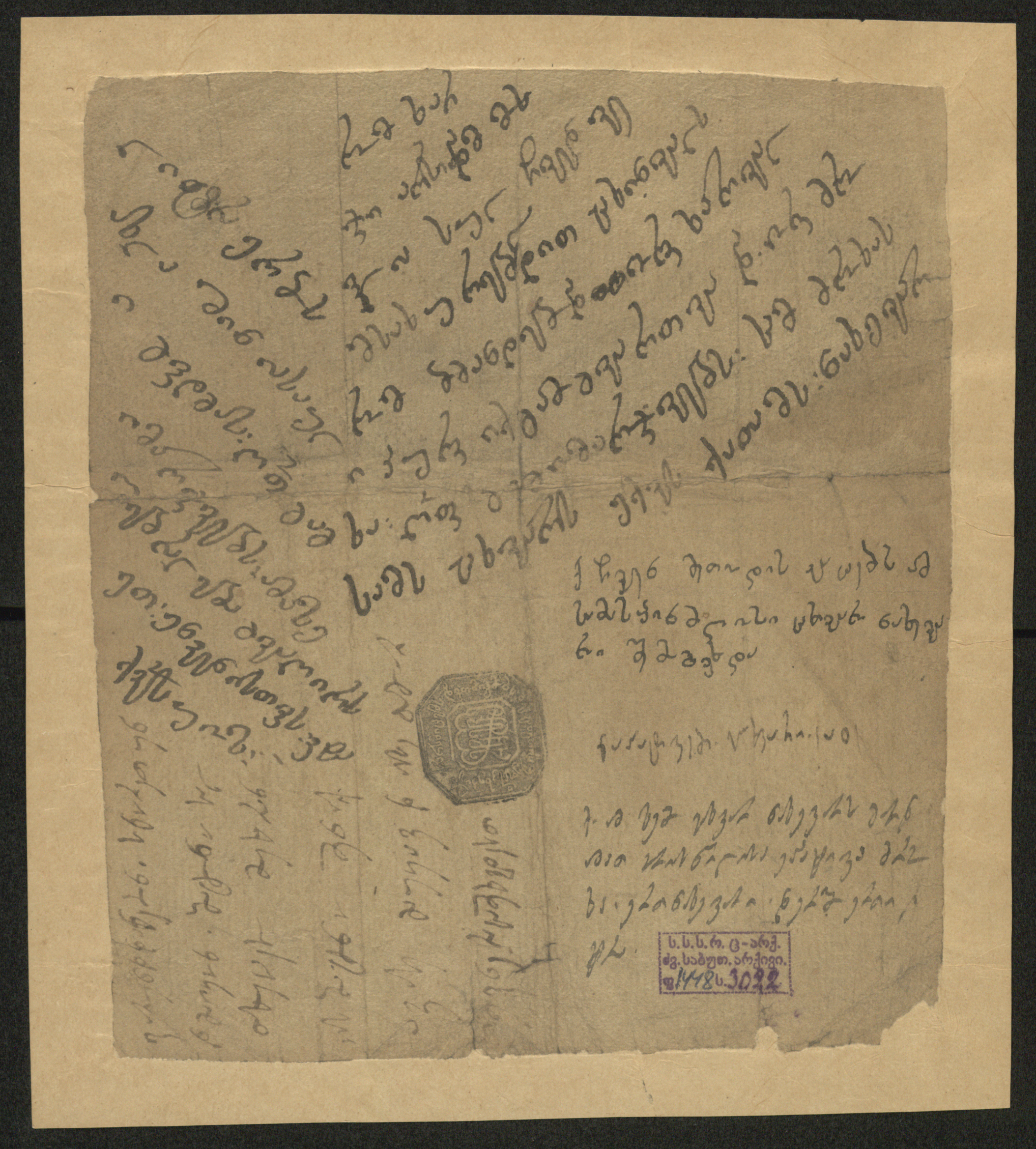 ქაღალდი ყავისფერი, შესრულებული შავი მელნით
