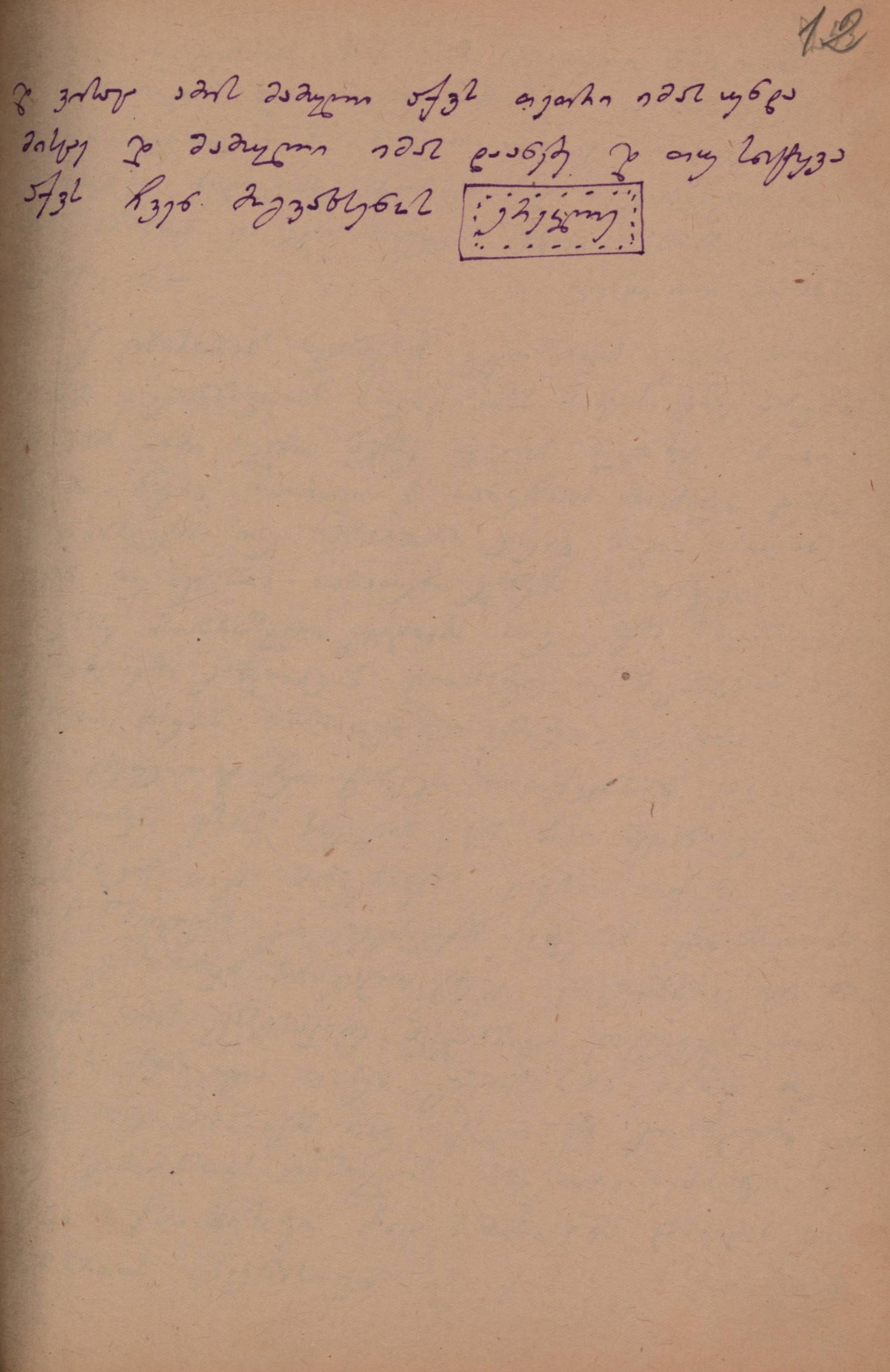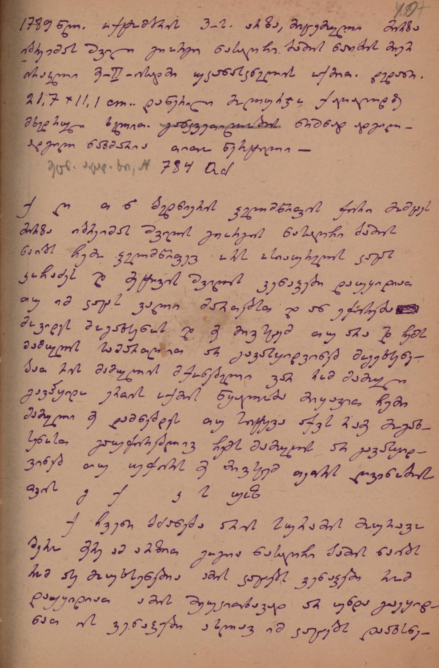 2. დედნის აღწერა გიორგი ბოჭორიძის მიერ: ,,დედანი, 21,7X11,1 cm., დაწერილი მოლურჯო ქაღალდზე მხედრული ხელით; განკვეთილობის ნიშნად ადგილ-ადგილ ნახმარია თითო წერტილი".