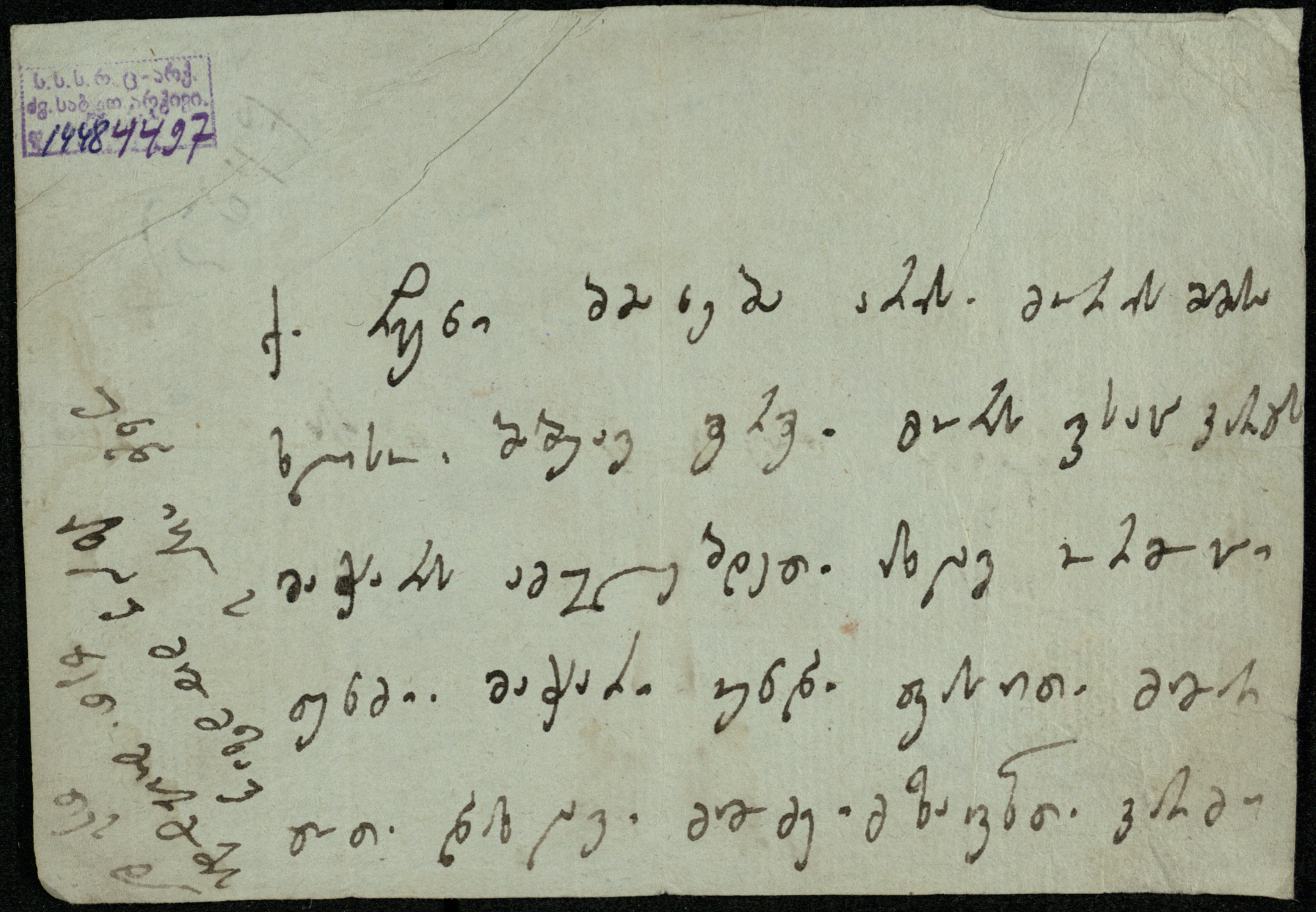 1. მინაწერი V-ზე დამწერის ხელით: ,,რუისული მაჭარი გაუგზავნეთ, შარბათისა“.