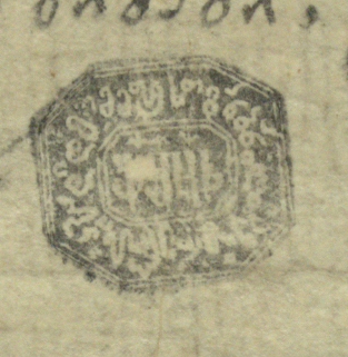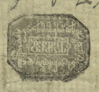 ჭვირნიშნიანი ქაღალდი მოყვითალო, შესრულებული შავი მელნით