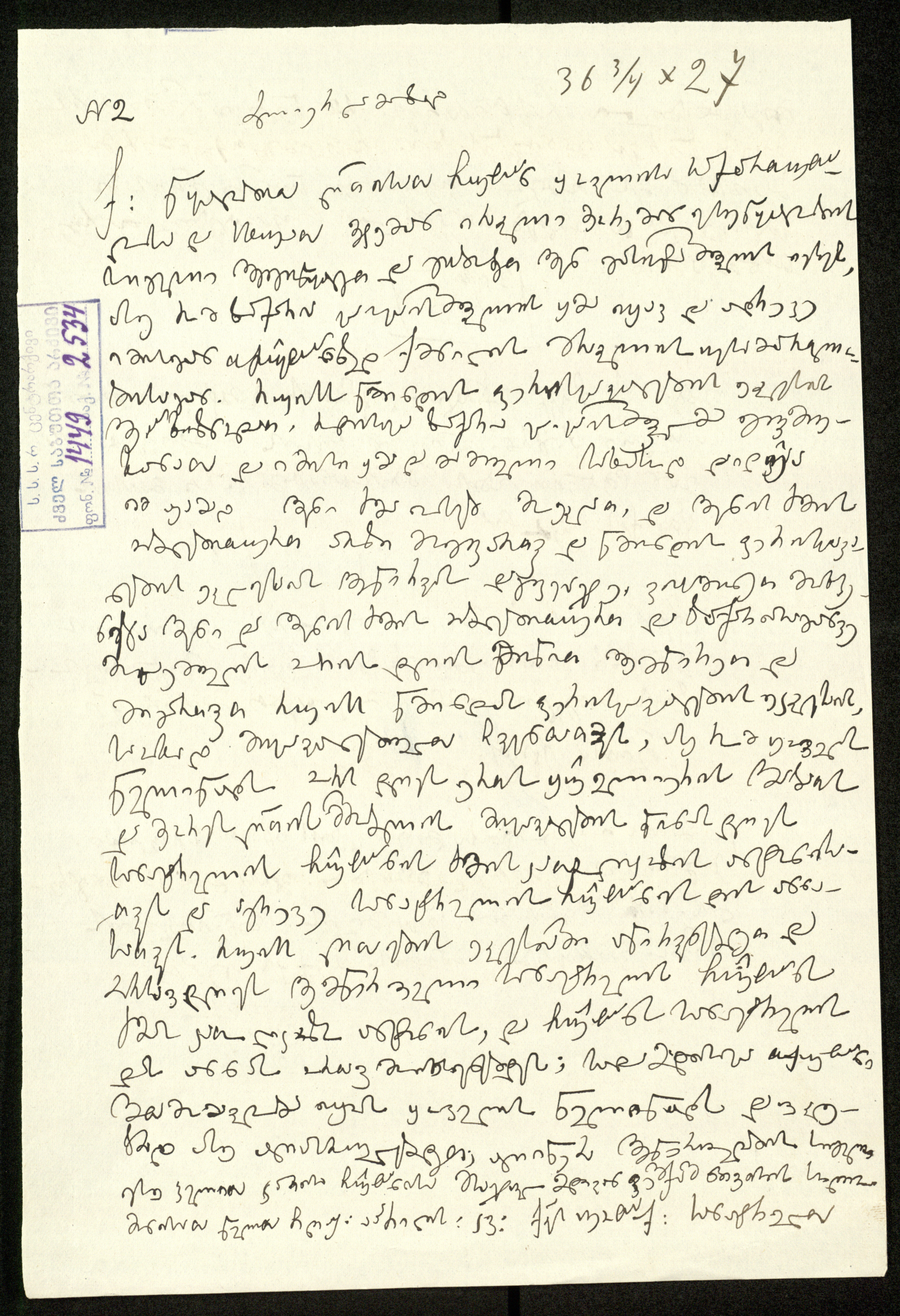 2. სარგის კაკაბაძეს მითითებული აქვს საბუთის დედნის აღწერილობა და ზომა: ,,ძლიერ ლამაზად, 363/4 X27“; ძველი საარქივო-სააღრიცხვო ნომერი: N2".