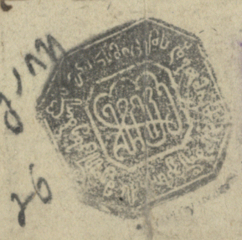 ნაცრისფერი ქაღალდი ჭვირნიშნით და ვერჟერით, შესრულებული შავი და ყავისფერი მელნით