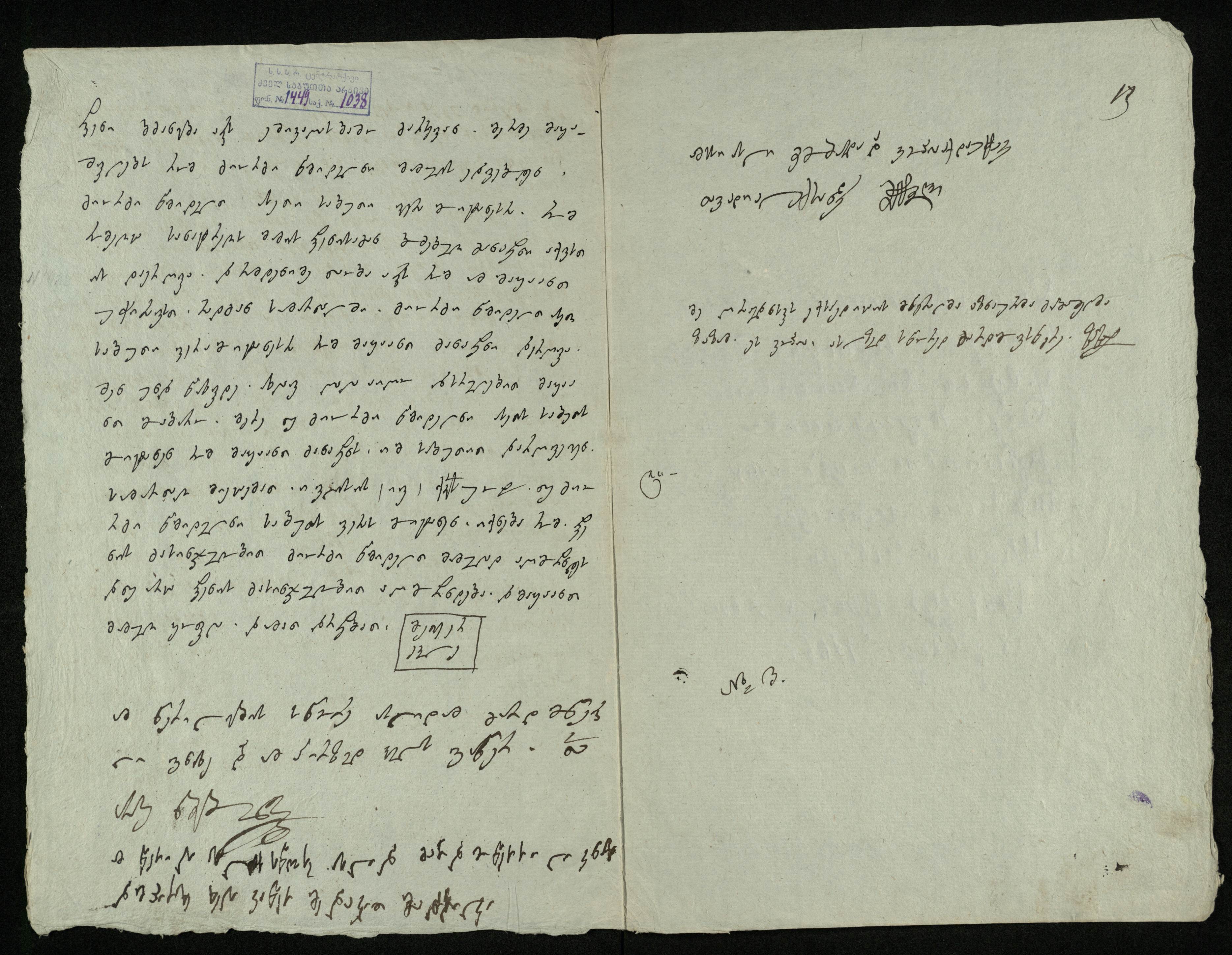 მინაწერები იმავე მელნით: 1.,,ამ წერილების სწორე ასლიდამი გარდმოწერილი ვნახე და ამპირზედ ხელს ვაწერ; თავადი) არსენ ბებუთოვი.
