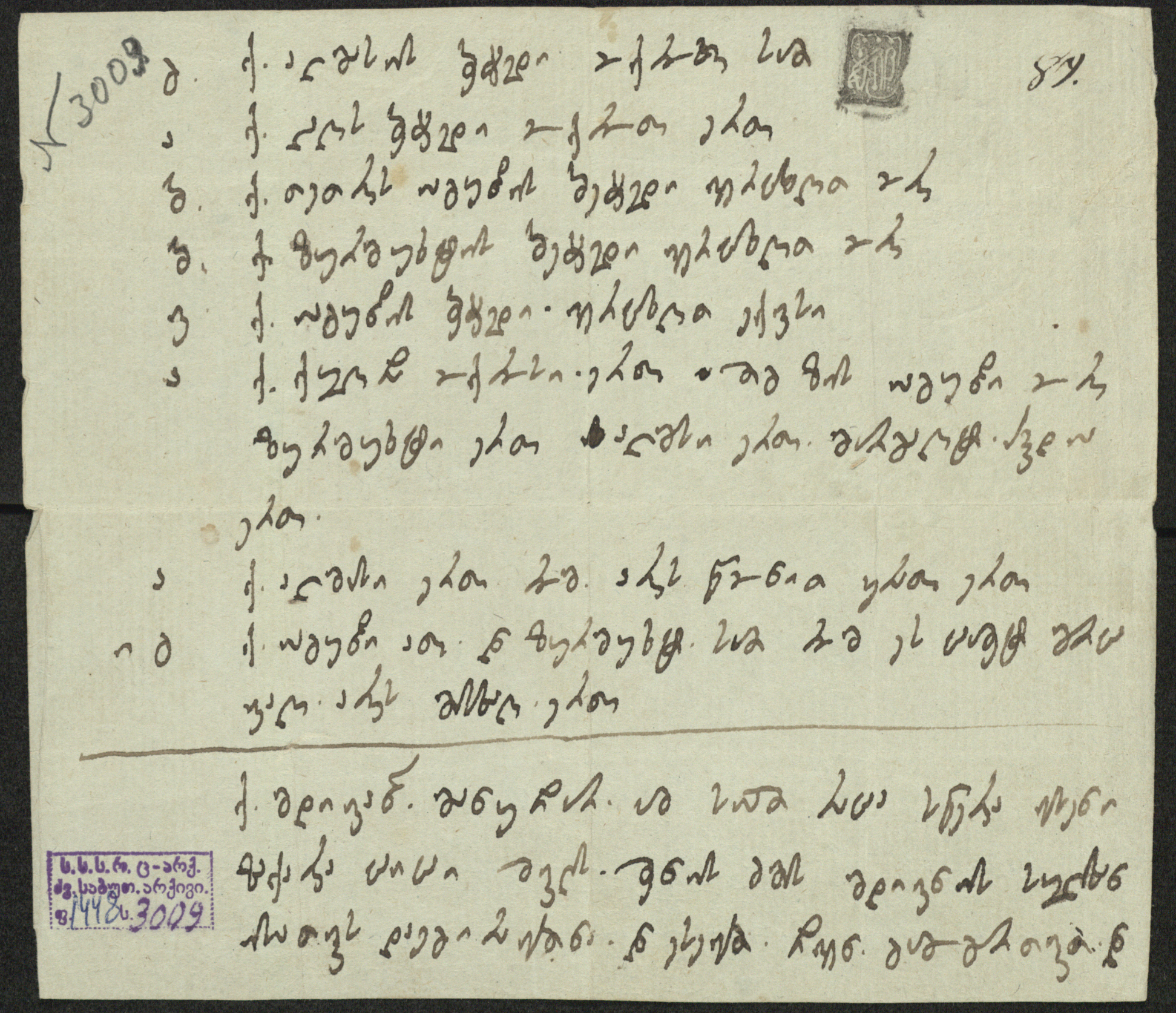 ჭვირნიშნიანი ქაღალდი ნაცრისფერი, შესრულებული ყავისფერი მელნით