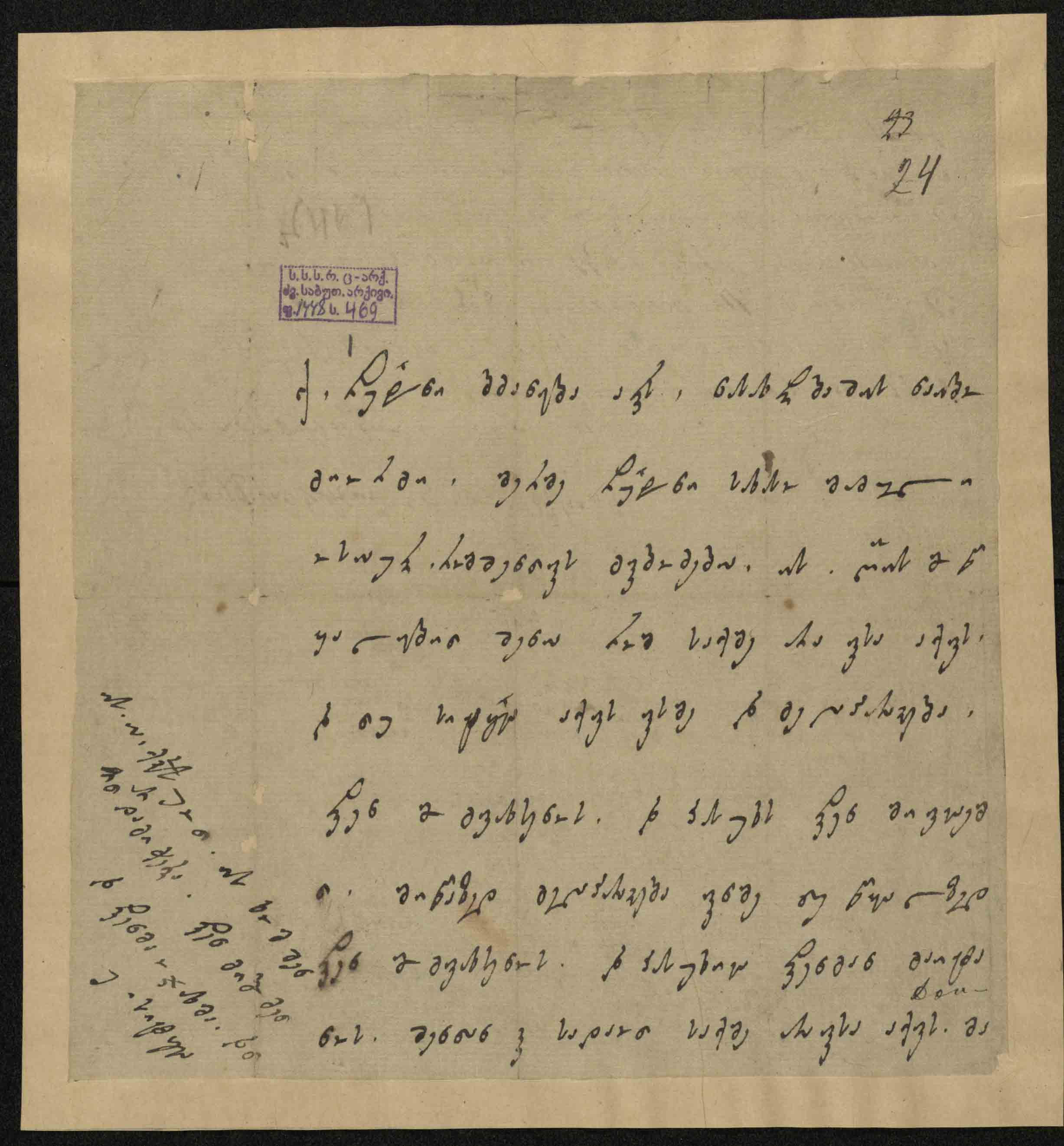 ნაცრისფერი ქაღალდი ჭვირნიშნით, შესრულებული შავი მელნით