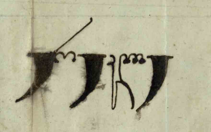 ნაცრისფერი ქაღალდი ჭვირნიშნით სამი მთვარე, დაწერილი შავი მელნით