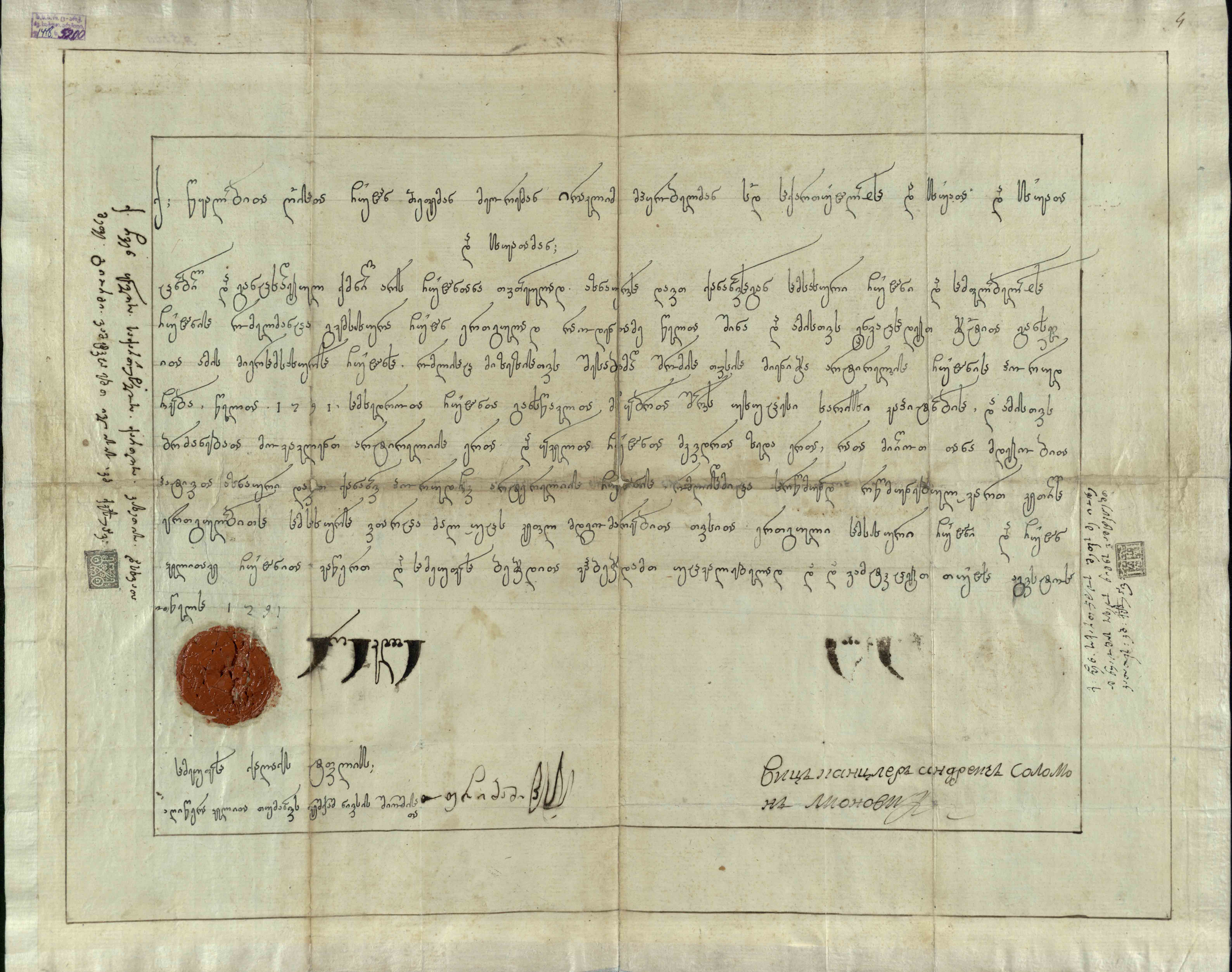 1. ვიცე კანცლერის სოლომონ ლიონოვის/ლეონიძე საბუთს ამტკიცებს რუსულ ენაზე.