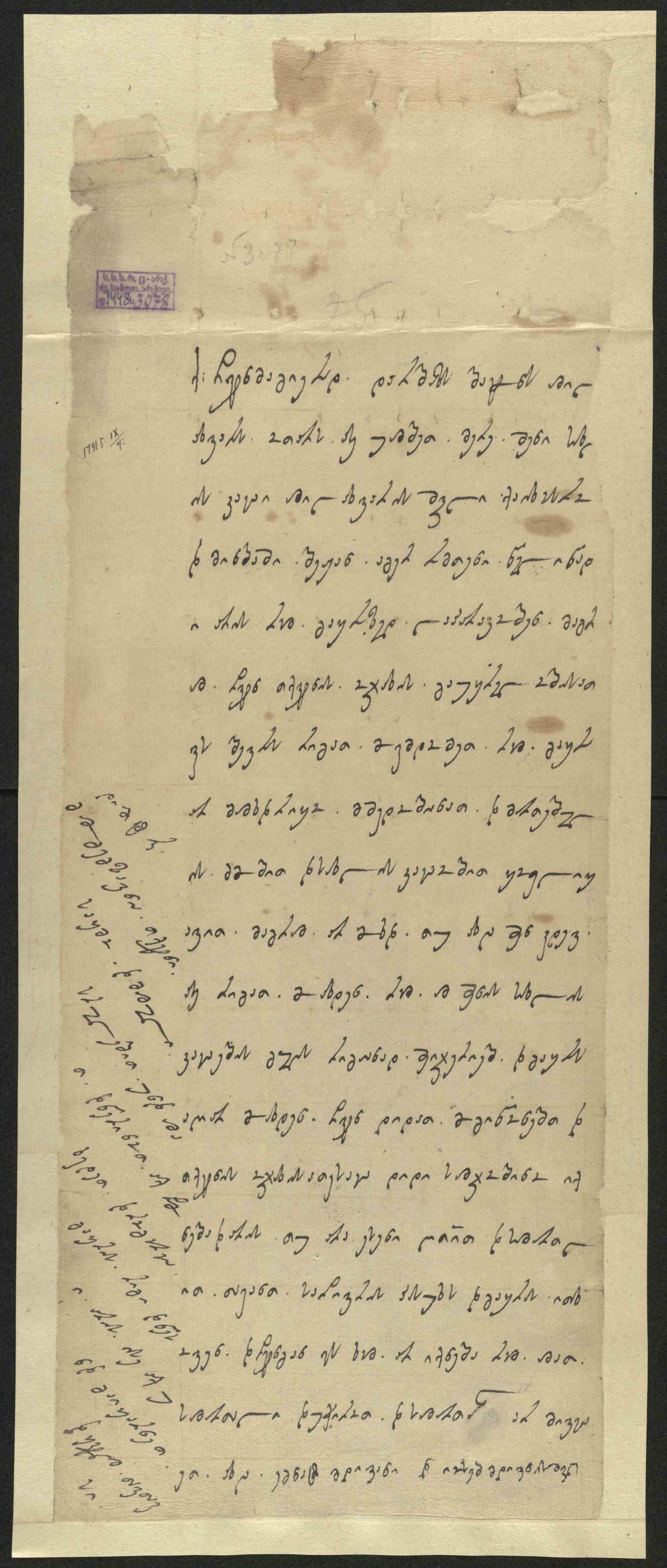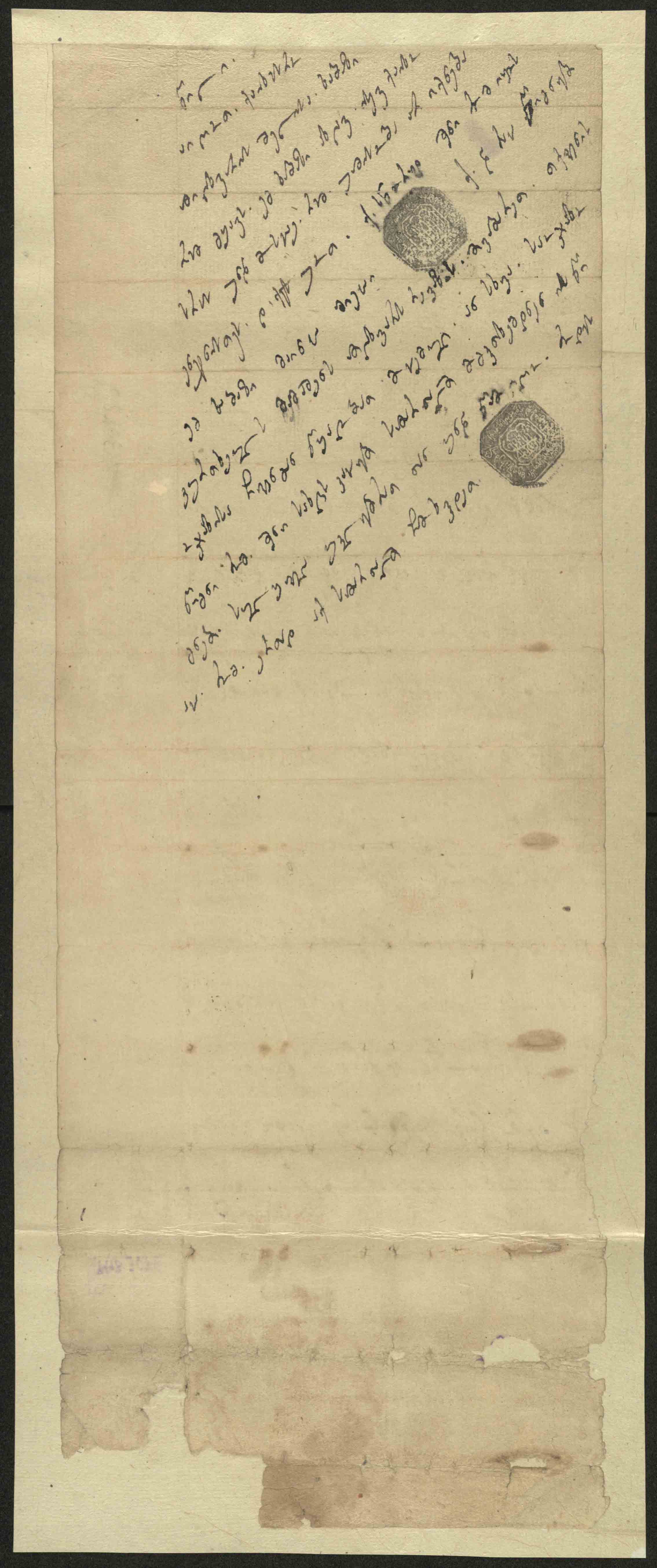 ქაღალდი ყვითელი - ჭვირნიშნით ირემი, შესრულებული ყავისფერი და შავი მელნით,