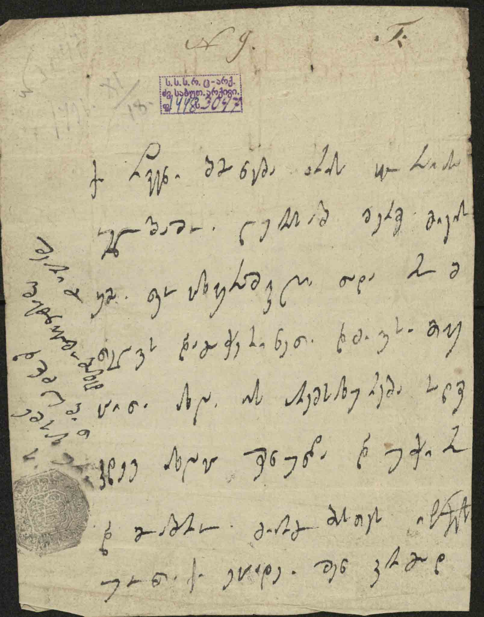 ჭვირნიშნიანი ქაღალდი ნაცრისფერი, შესრულებული შავი მელნით