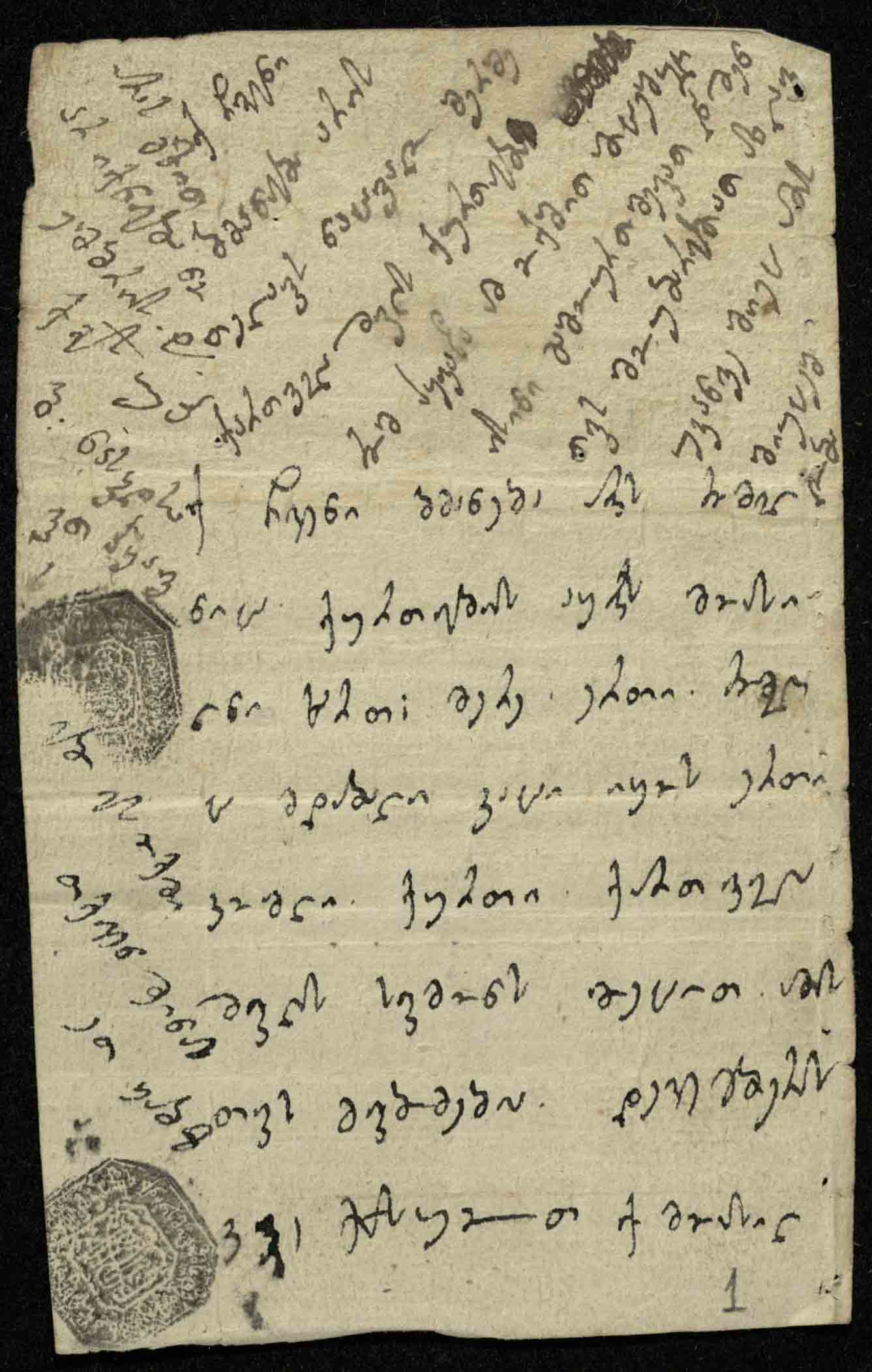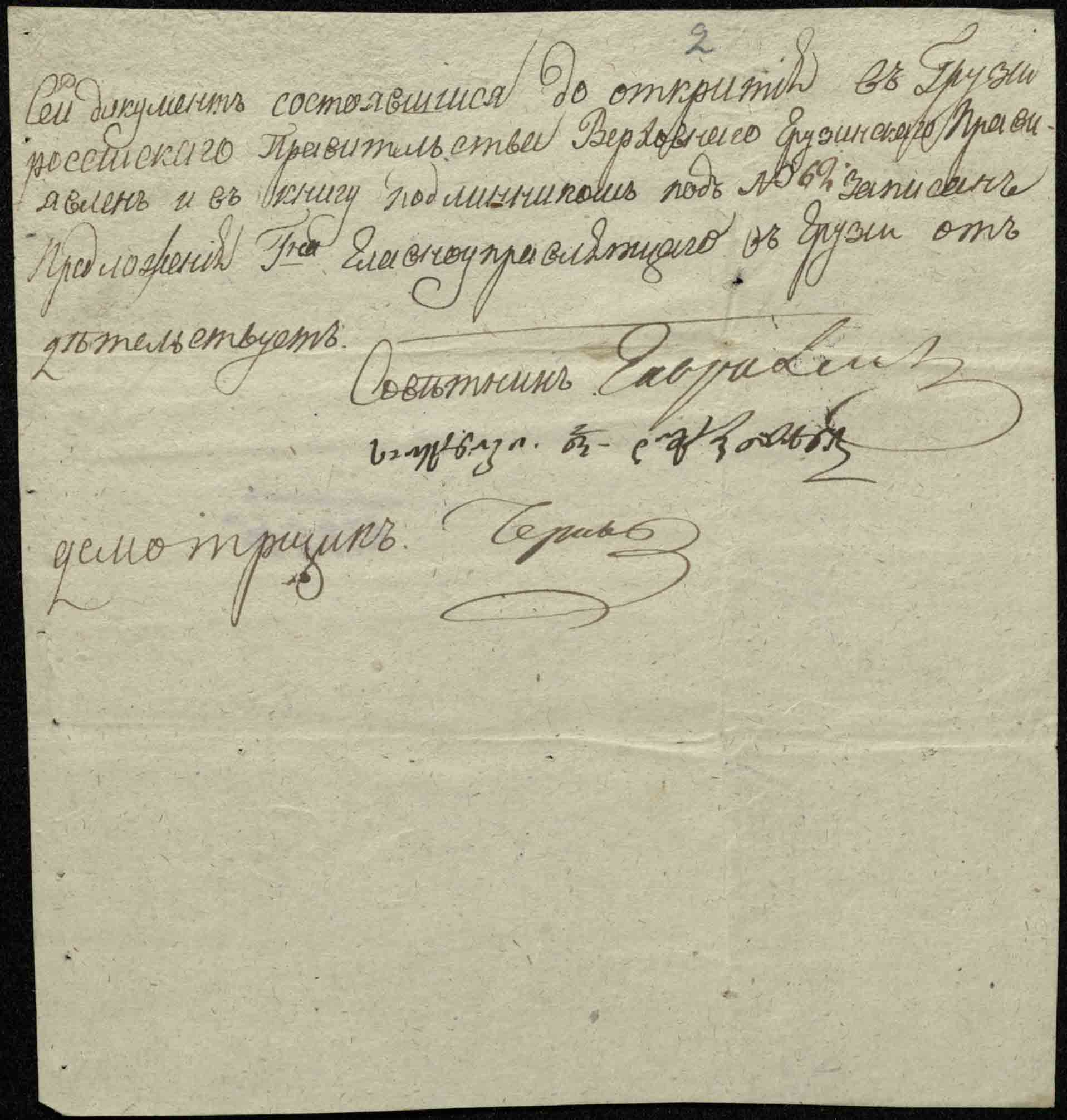 2. r-ს ზედა არშიაზე მიწერილია 1794 წ. 8 ნოემბრის ბრძანება ერეკლე II-ისა, თელავის ნაცვლის მიერ მითვისებული ქურთების ქართველაშვილისთვის დაბრუნების შესახებ.