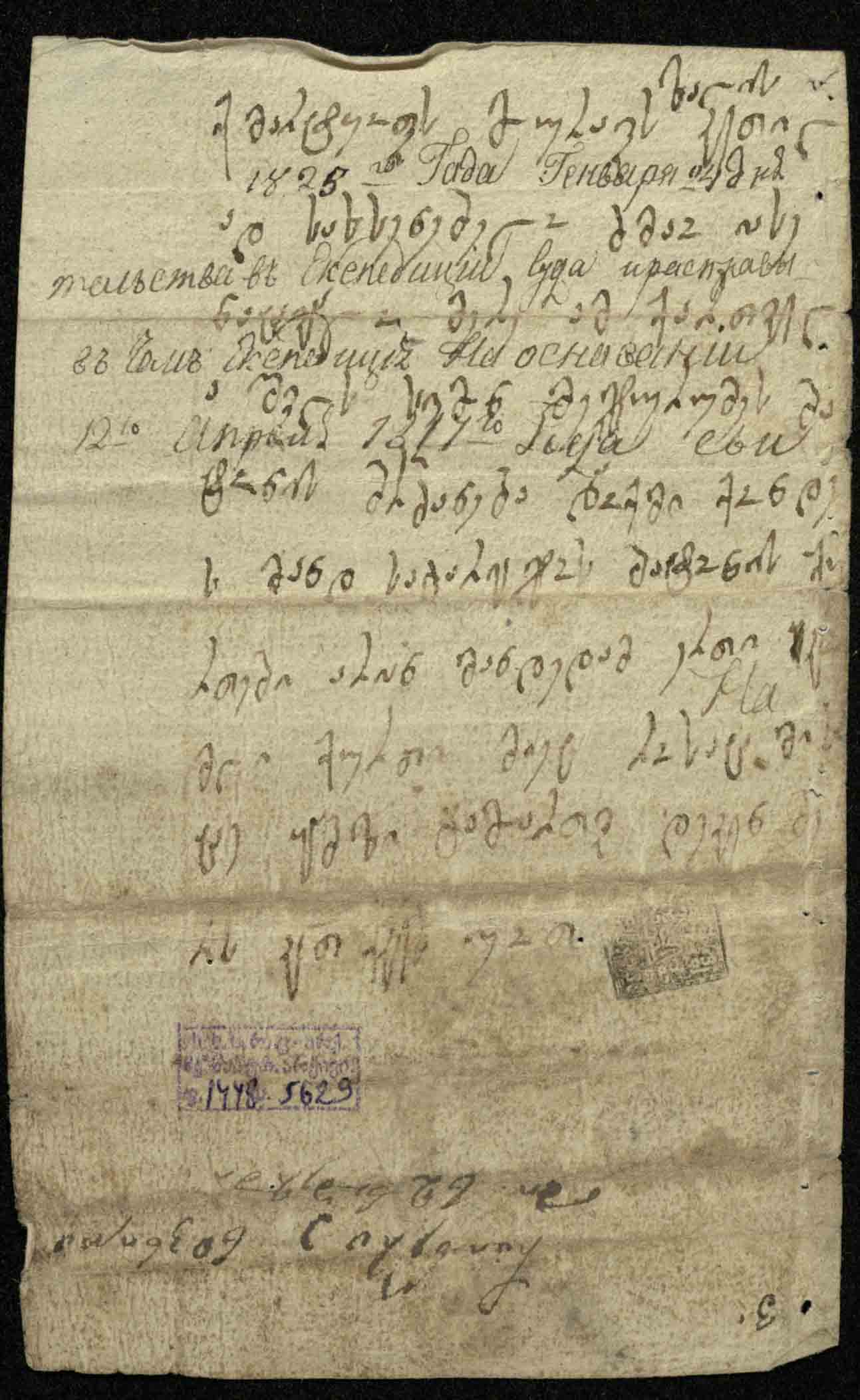 1. საბუთს ახლავს 29 დეკემბრის ბარათი მარტყოფის მოურავ ზაალ ენდრონიკაშვილის ნაცვალი იასესადმი, ქურთების სვიმონ ქართველაშვილისთვის გადაცემის თაობაზე.