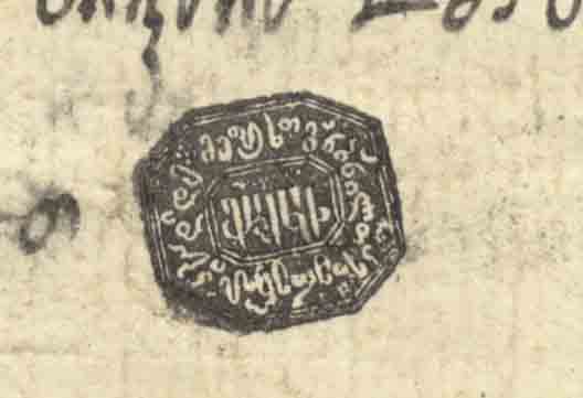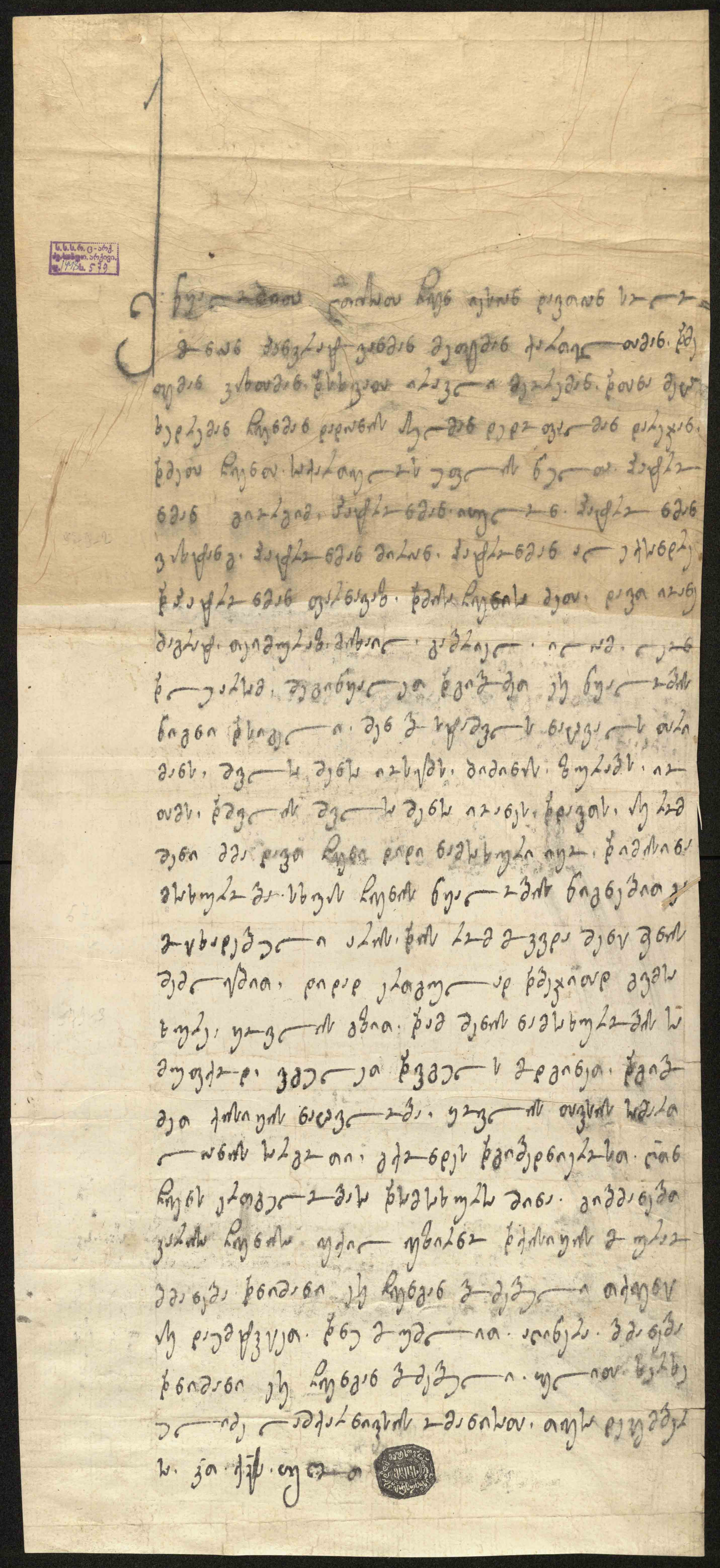 1. საბუთს თავში ახლავს დიდი ზომის უბრალო ქანწილი, შესრულებული შავი მელნით.