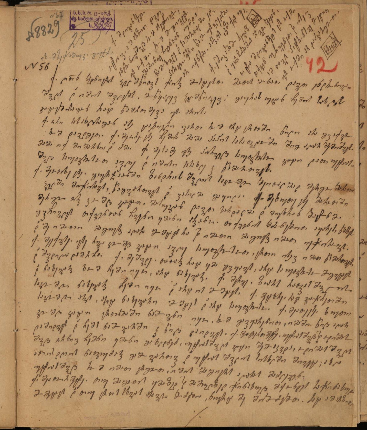 ქაღალდი მოყვითალო, დაწერილი ყავისფერი მელნით