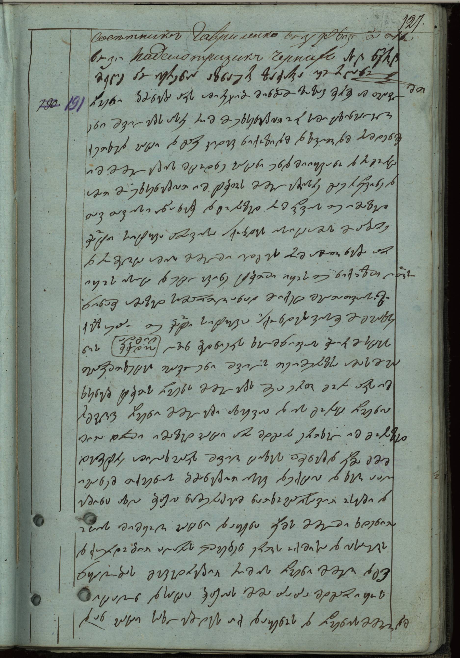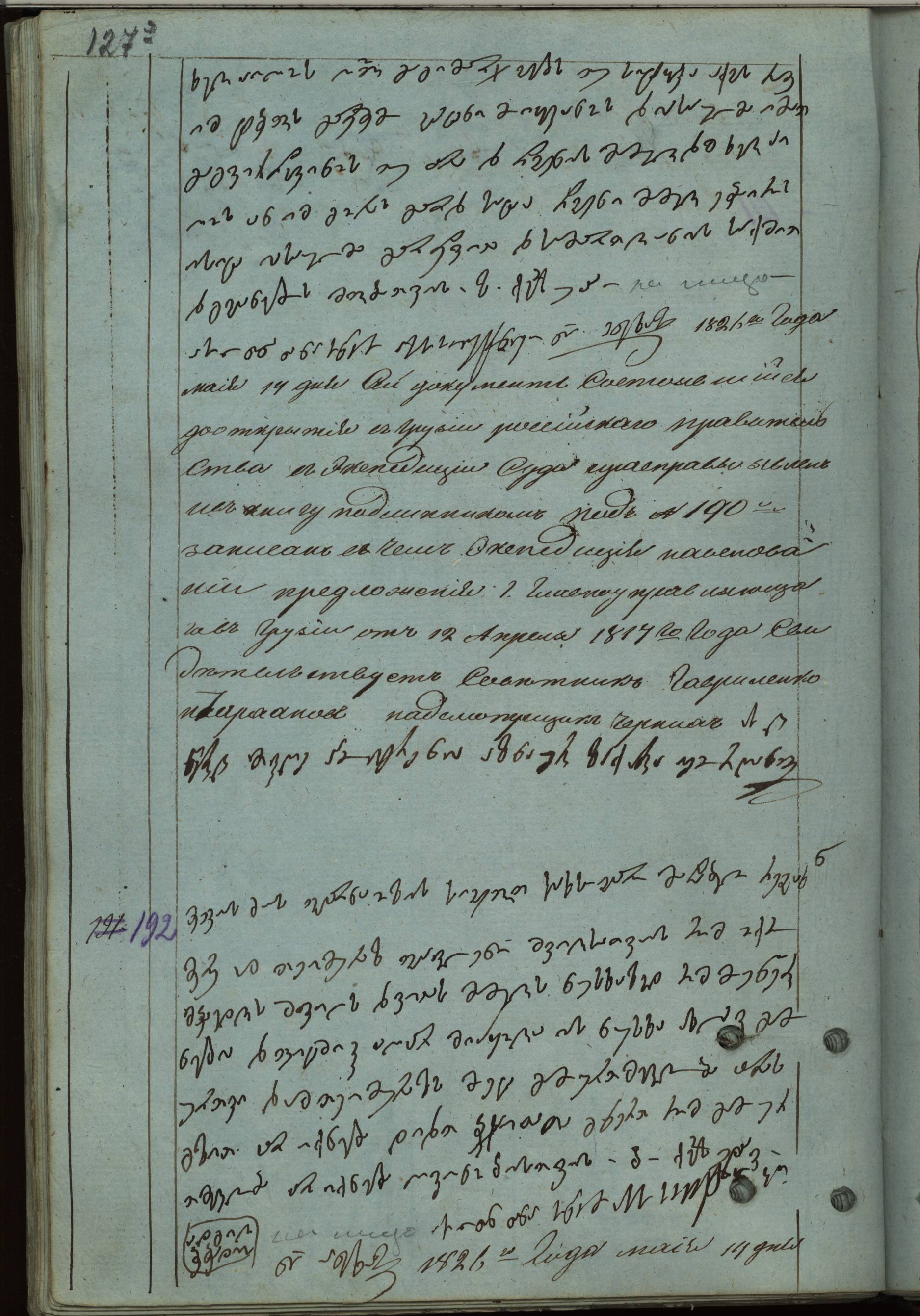 ქაღალდი ცისფერი დაწერილი შავი მელნით